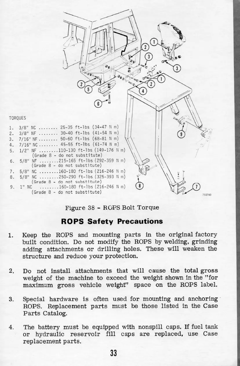 Case 580 ck - ROPS Safety Precautions; ROPS Bolt Torque