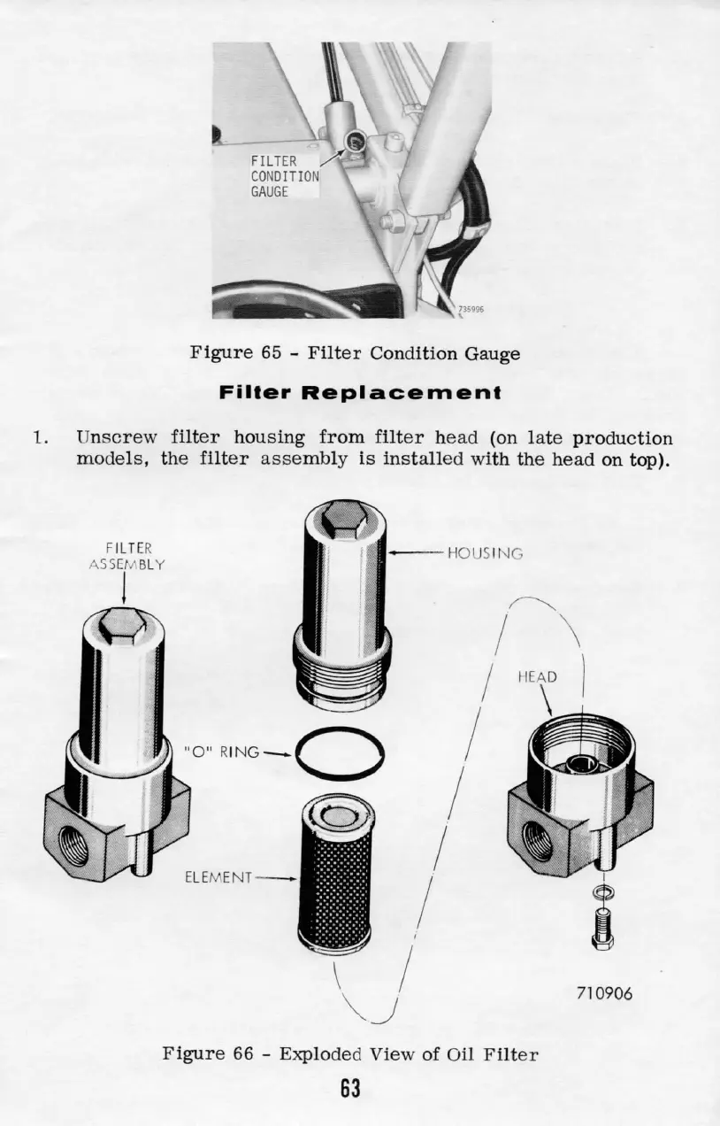 Case 580 ck - Filter Replacement; Filter Condition Gauge; Exploded View of Oil Filter