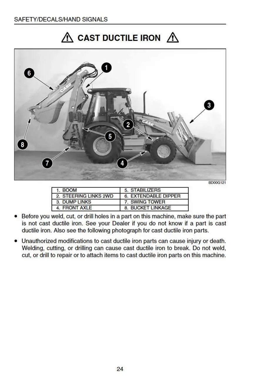 Case 580 SUPER M - Cast Ductile Iron Safety Precautions