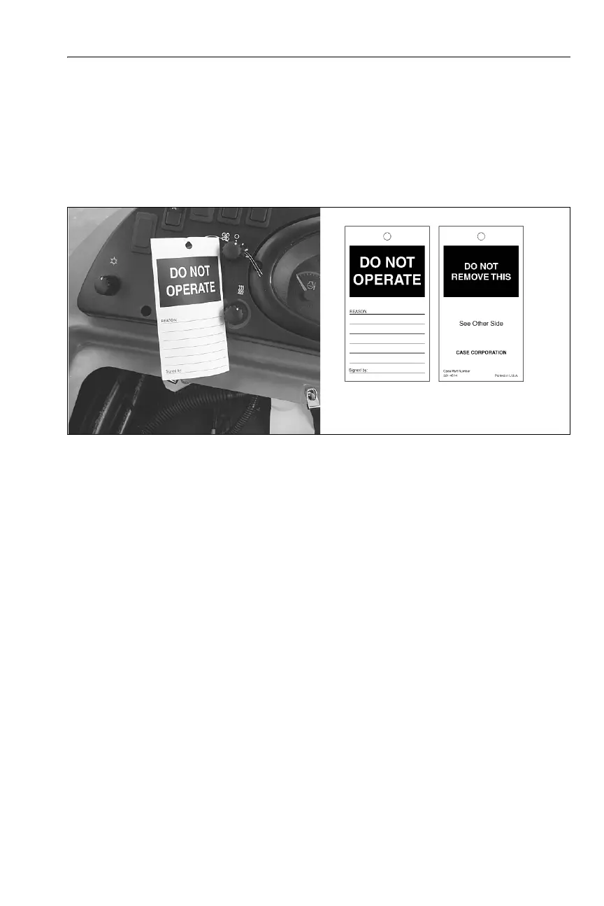• Before you service the machine, put a Do Not Operate tag on the key switch.