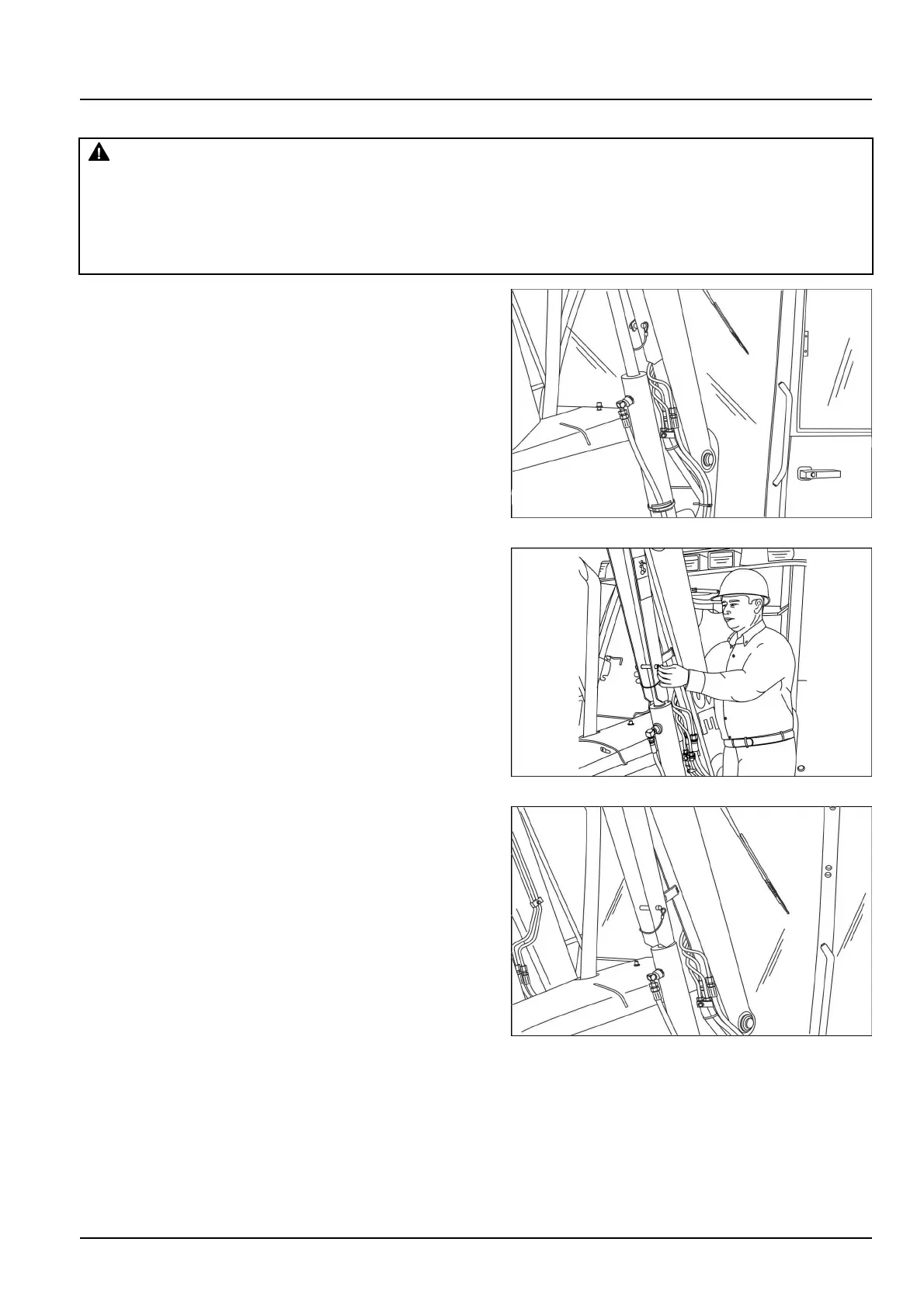Ifyouservicethemachinewiththeloaderliftarmsraised,alwaysusethesupportstrut.Removethe