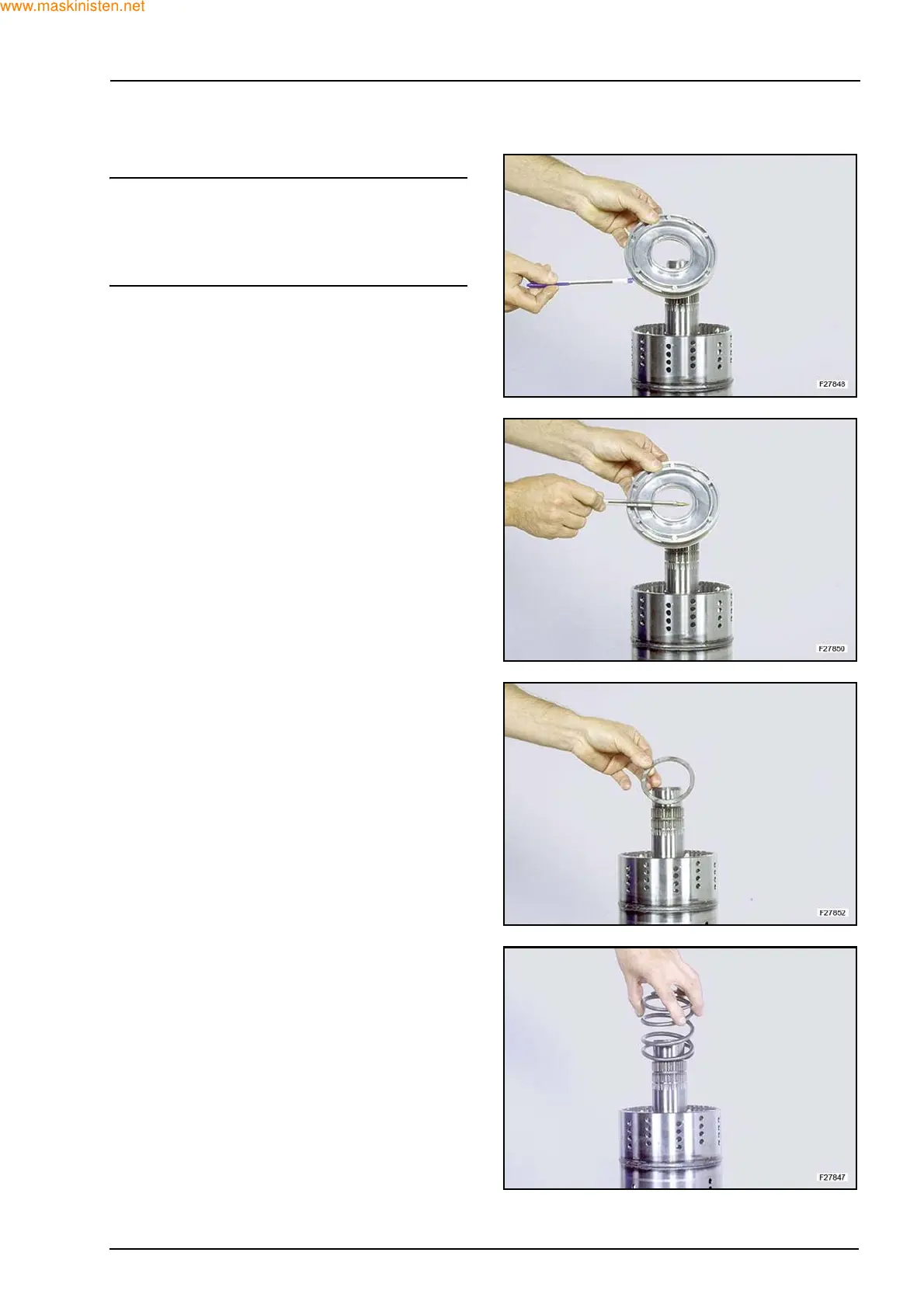 Install the clutch piston in clutch drum, use caution