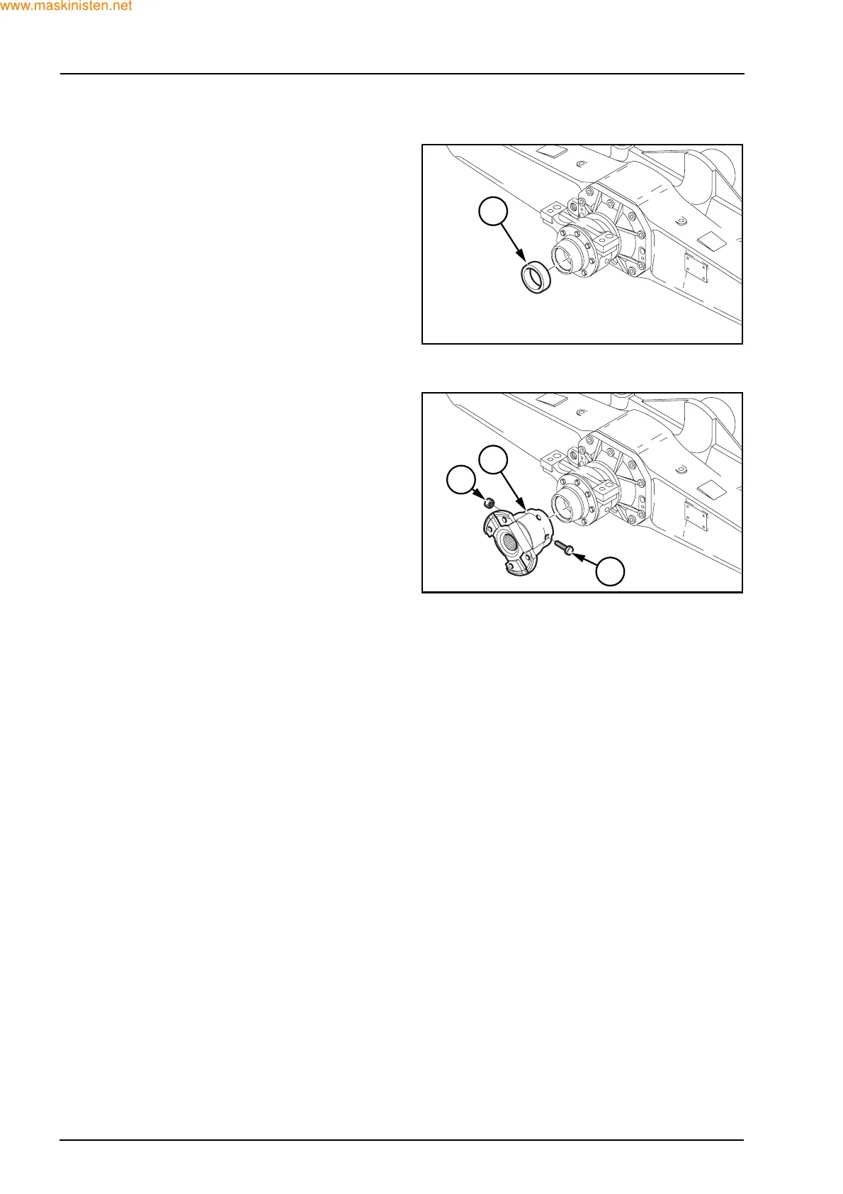 Assemble the flange (1). Lock the flange (1) with the