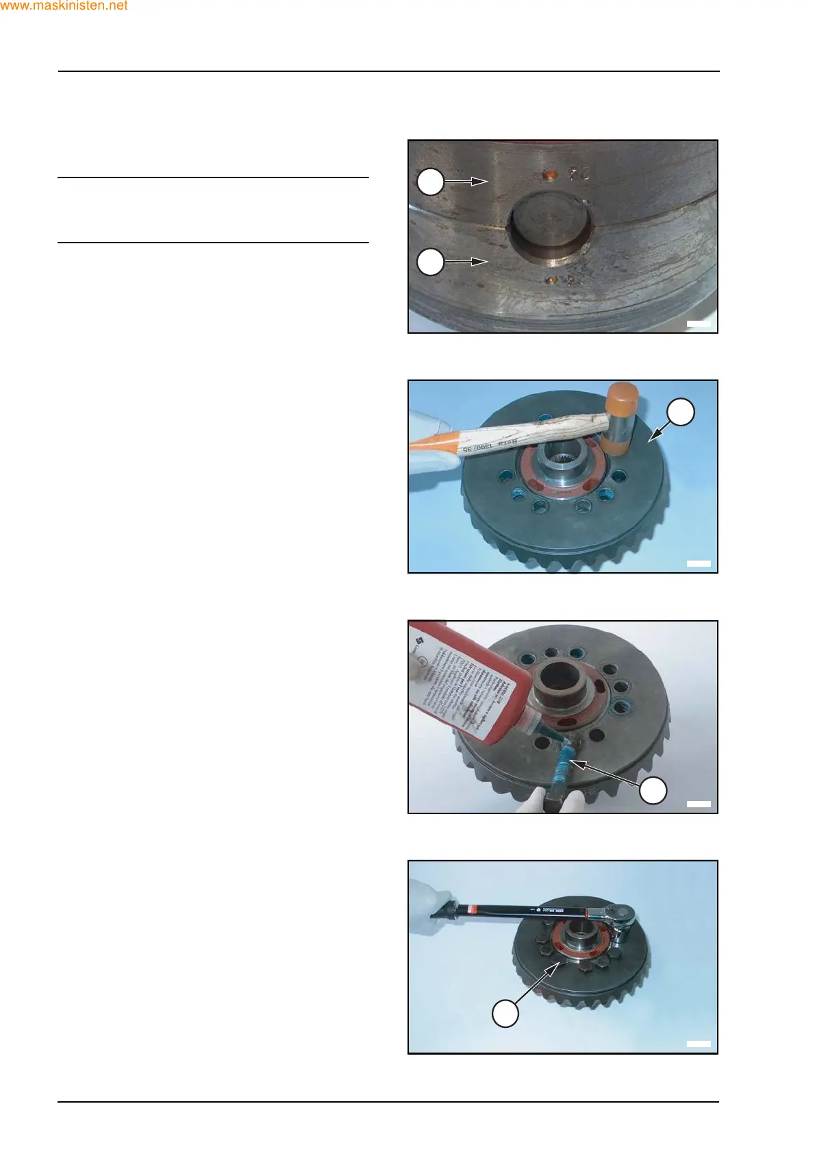 Assemble the ring gear (11) by means of a hammer.