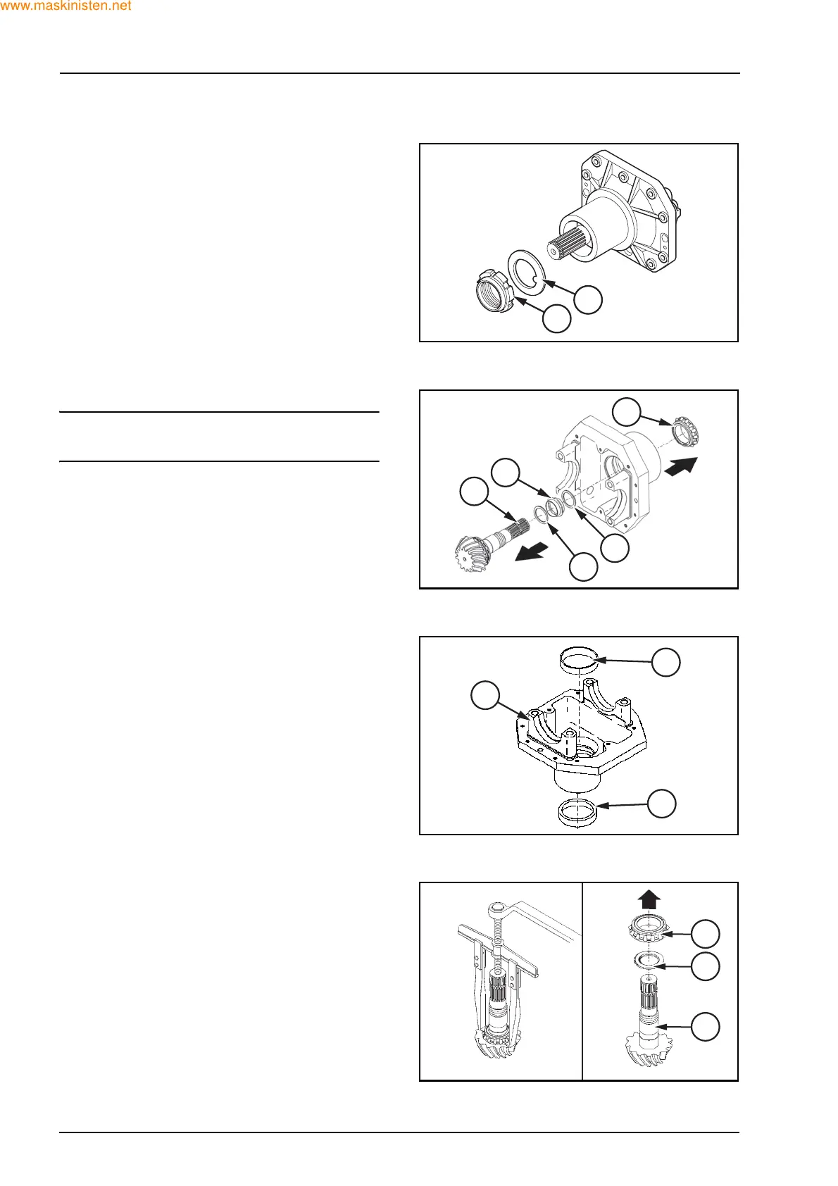 Take care not to lower the pinion (1).