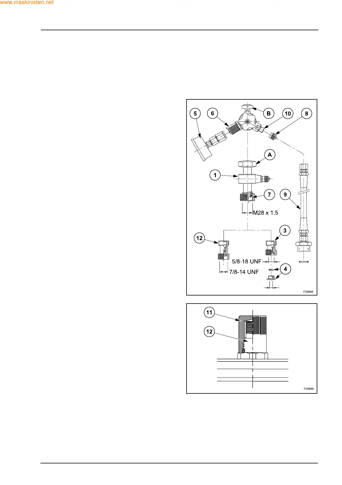and 4), screw onto the gas valve (13) and hand