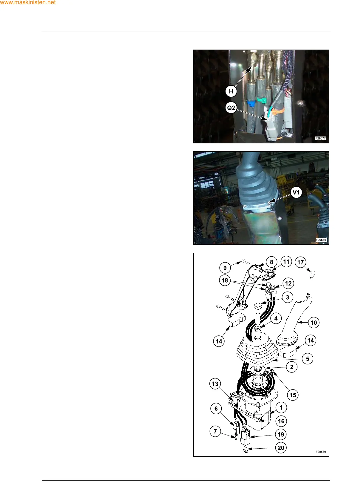Z Remove the screws (V1) and take out control lever