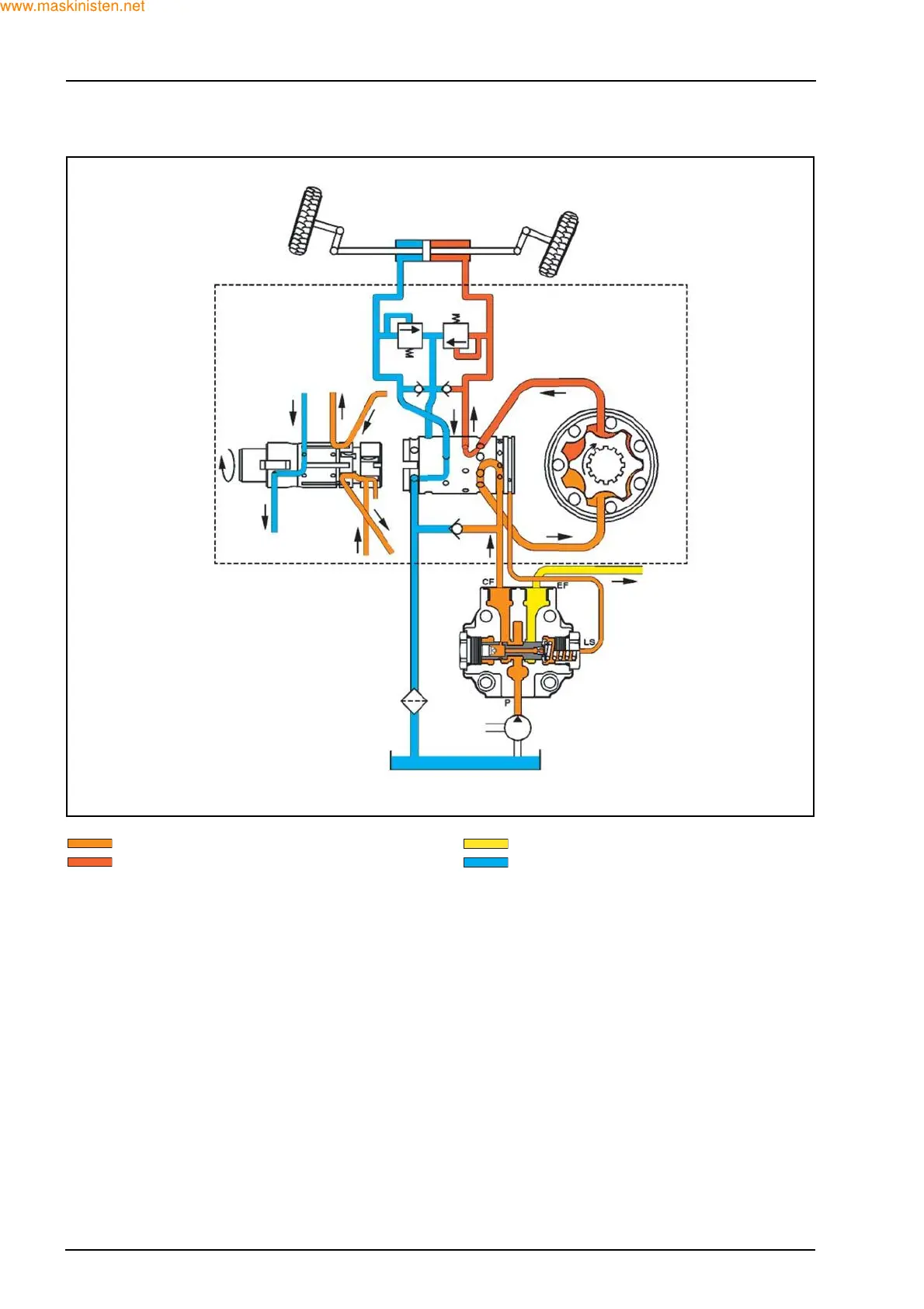 es. During right turn, oil flows through the spool