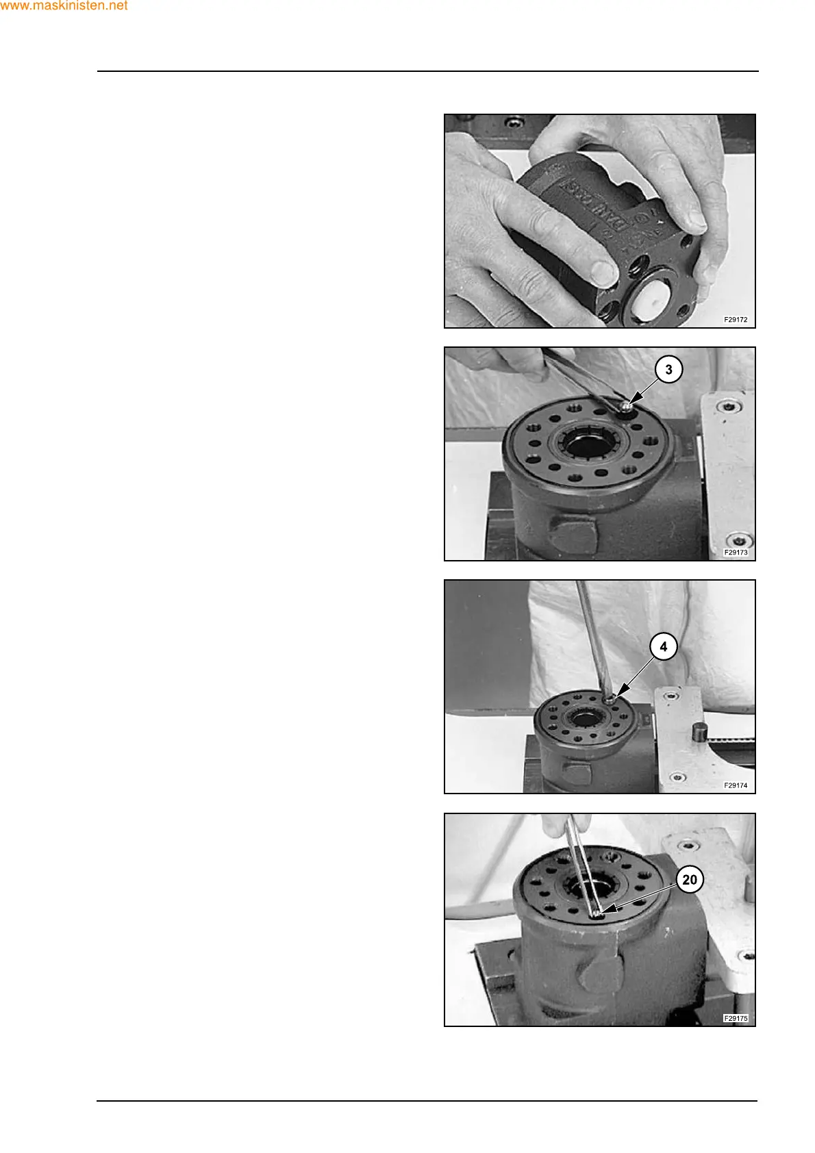 Put the check valve ball (3) into the hole indicated in