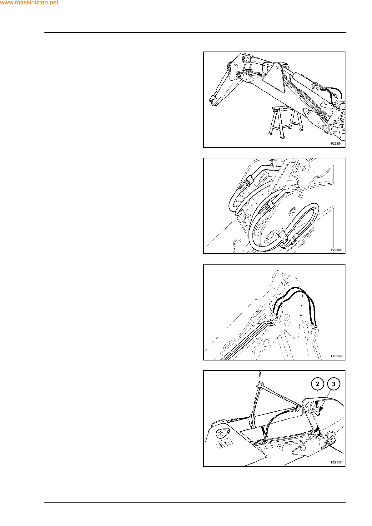 Lower cylinder onto boom. Use suitable cylinder sup-