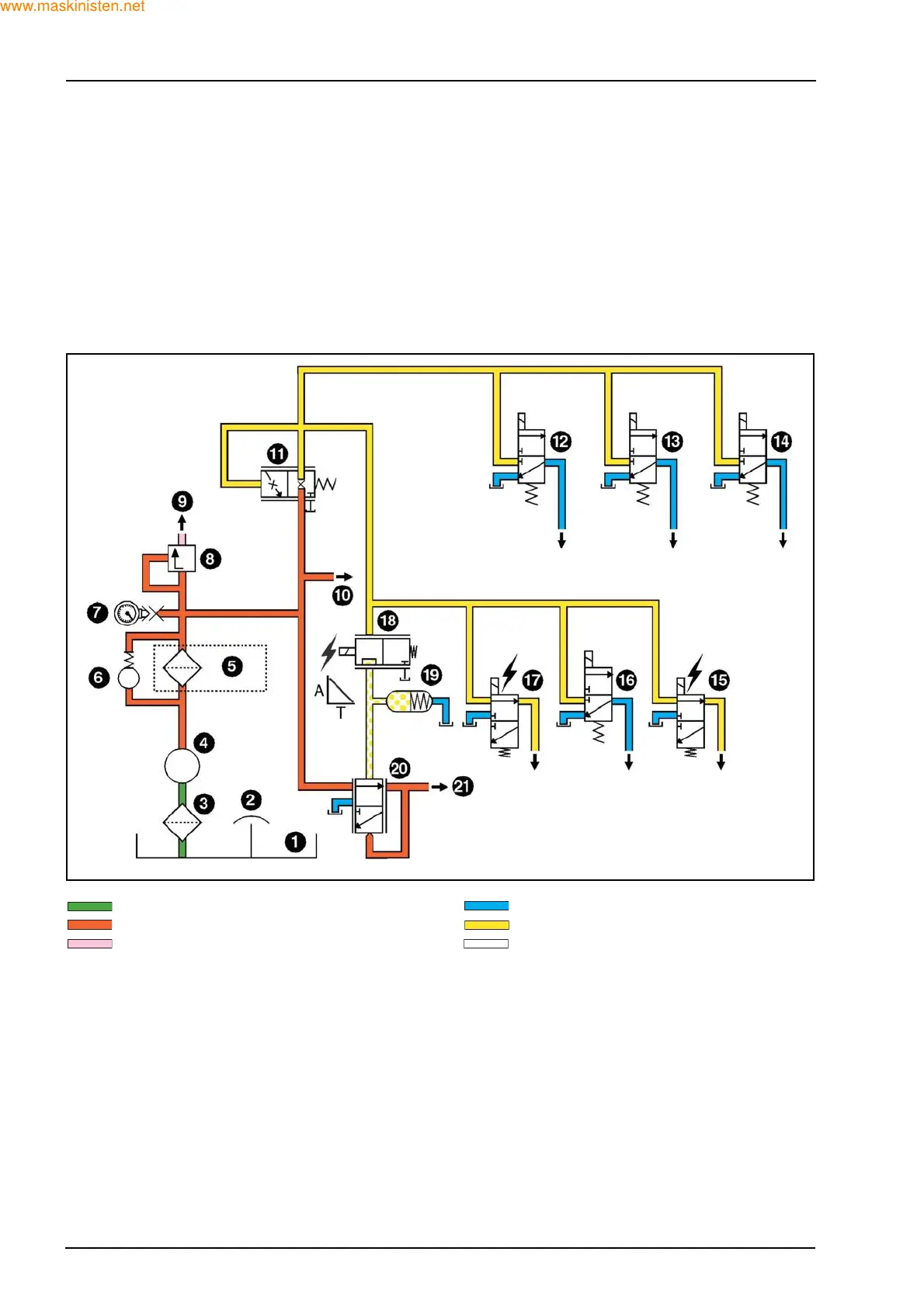 System pressure is reduced to 5.5 bar by the pressure reducer this oil then supplies the 6 solenoids and elec-