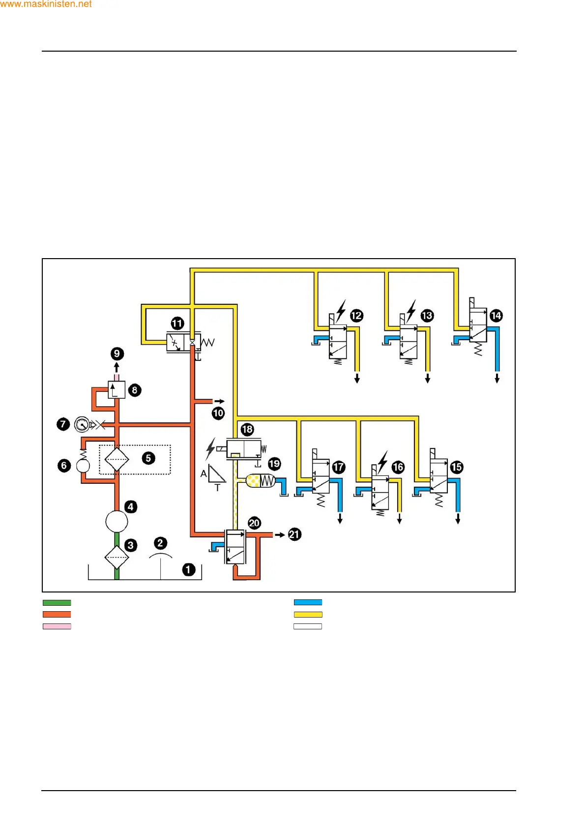 System pressure is reduced to 5.5 bar by the pressure reducer this oil then supplies the 6 solenoids and elec-