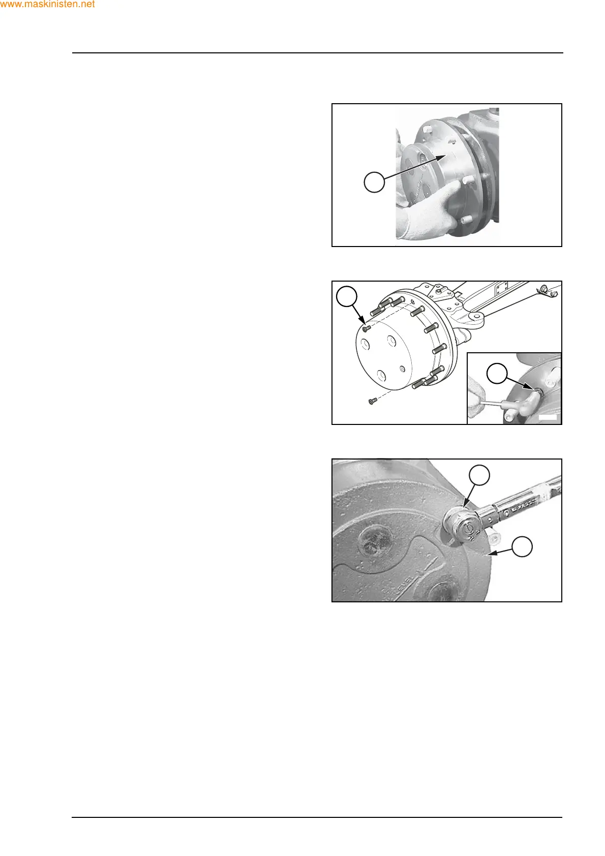 Assemble the screws (3) and tighten to the specified