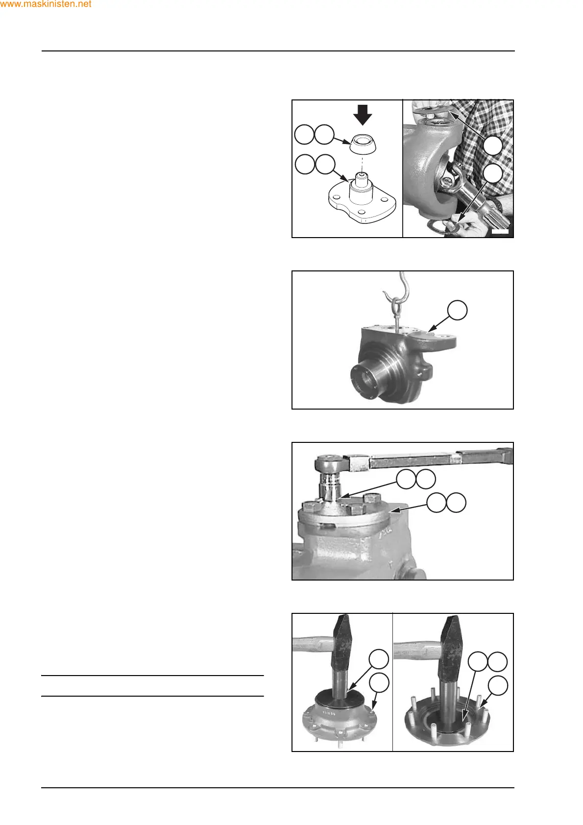 Grease carefully the seats of king pin (16) and (18)
