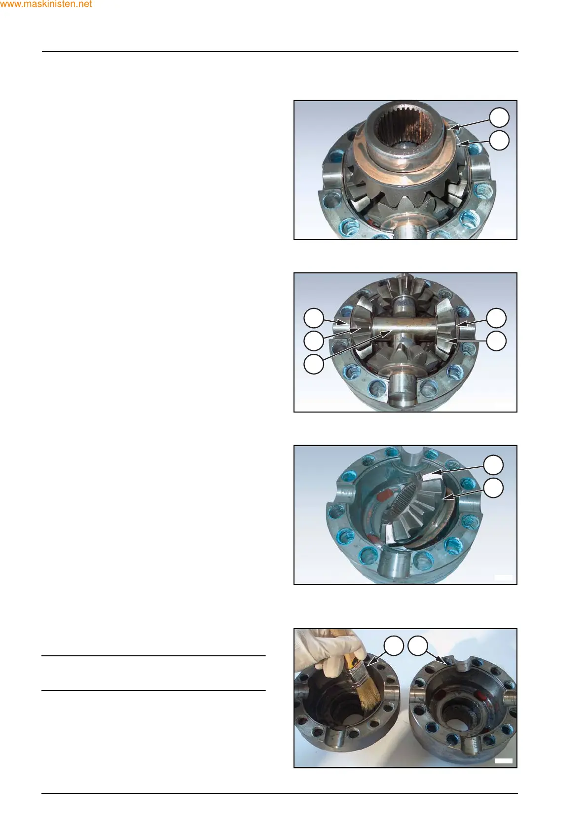 Remove the shaft (8), the gears (7) and the spheri-