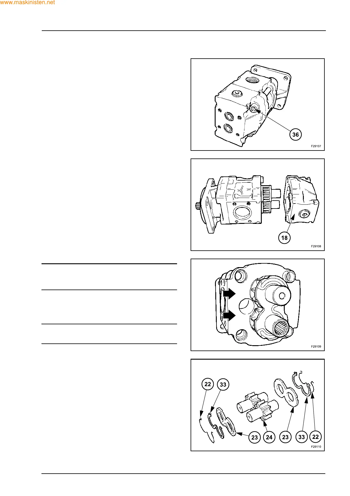 Disassemble the gears (24), the seals (33), the elas-
