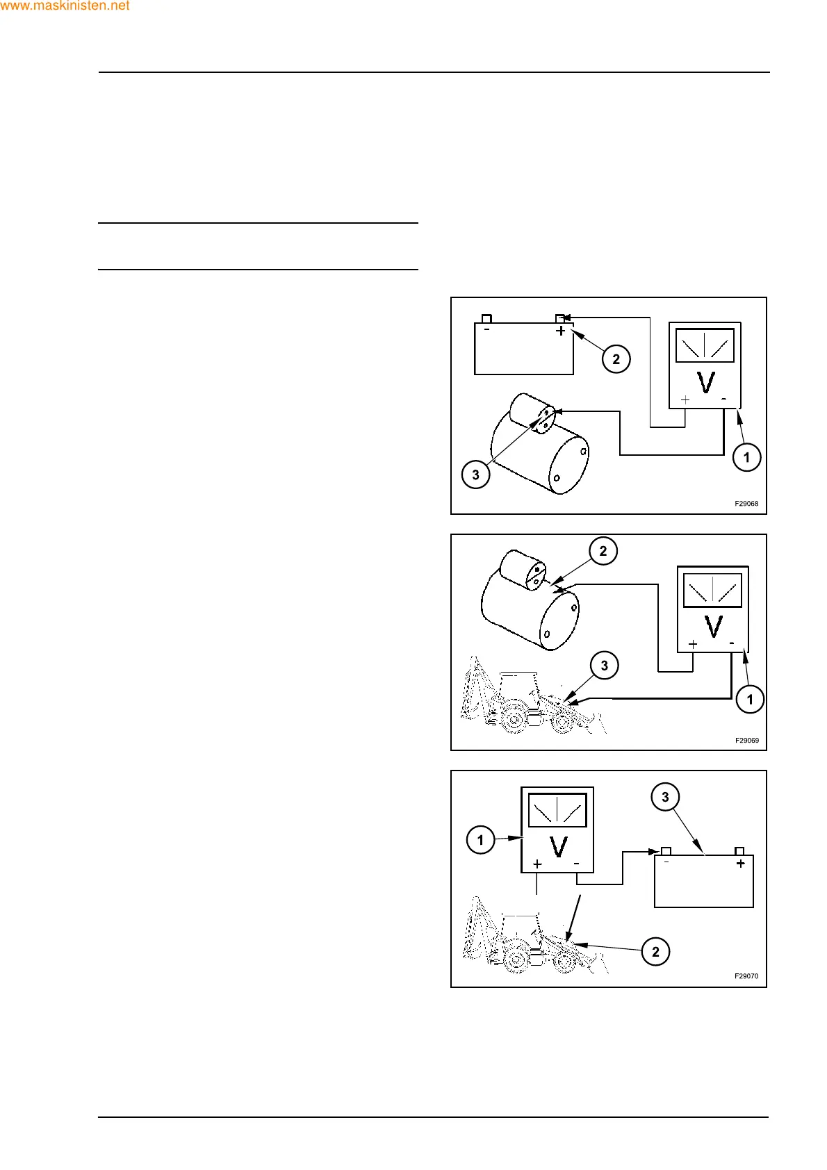 1. Connect the positive cable of the voltmeter (1) to