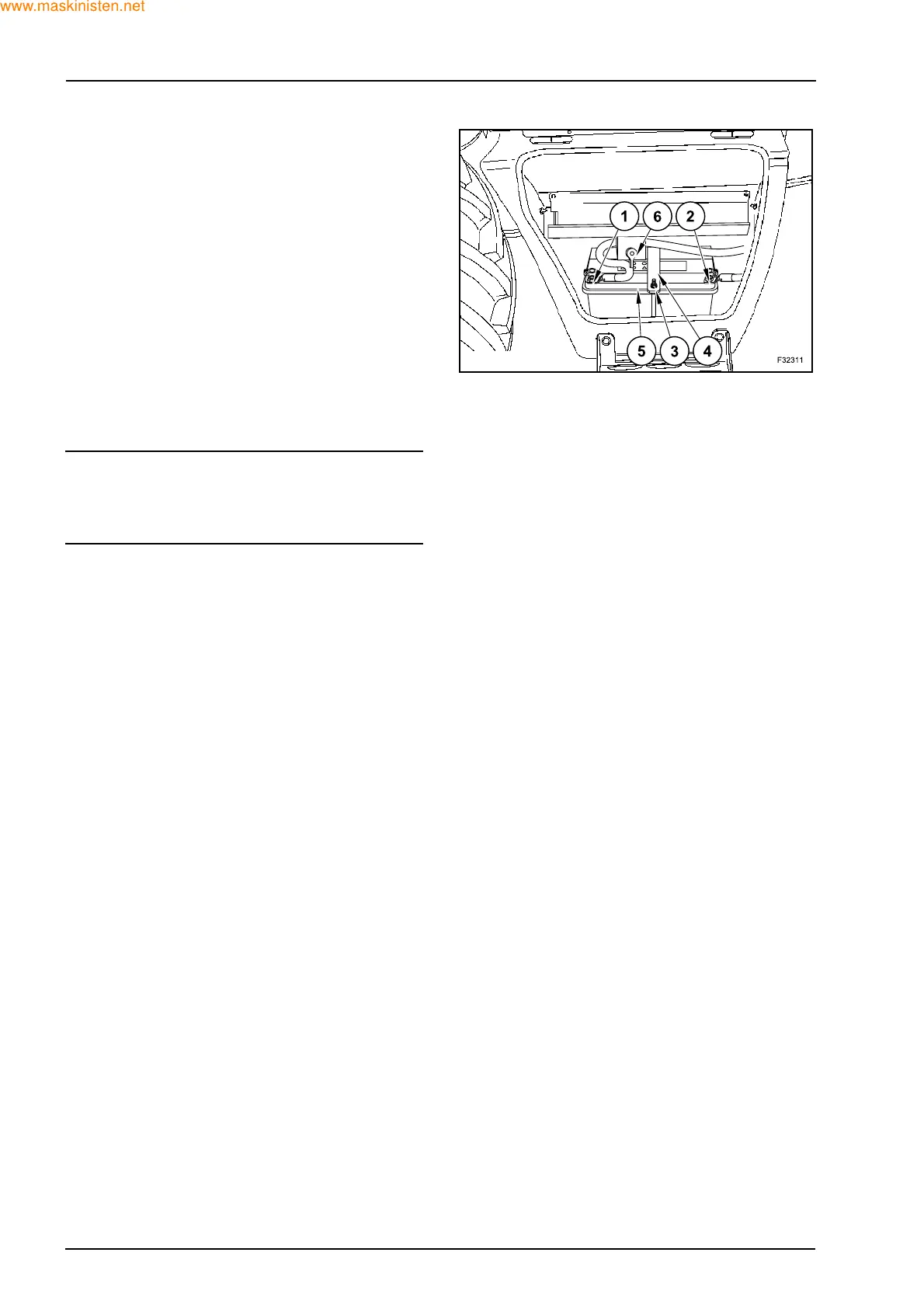 Z Remove the battery master switch support (6).