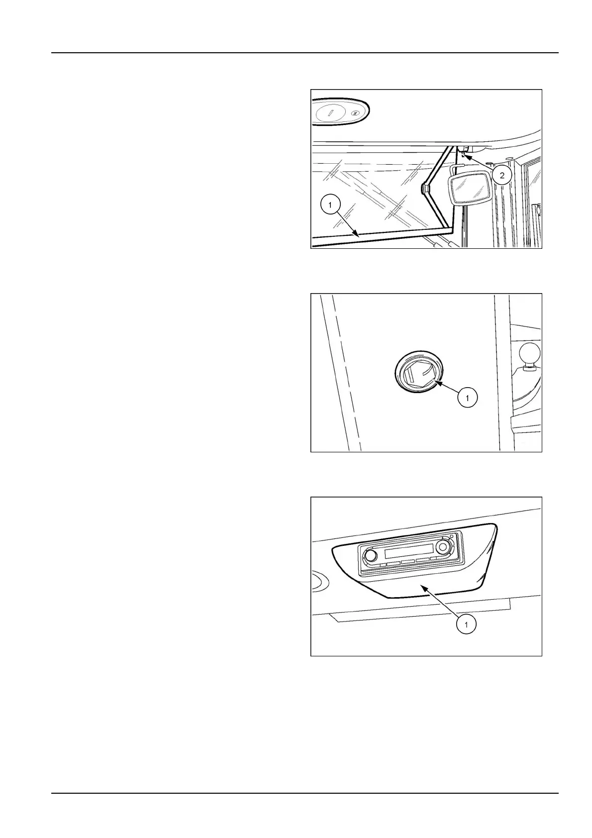 Onthecabroofthereisacompartment(1)wheretheradio