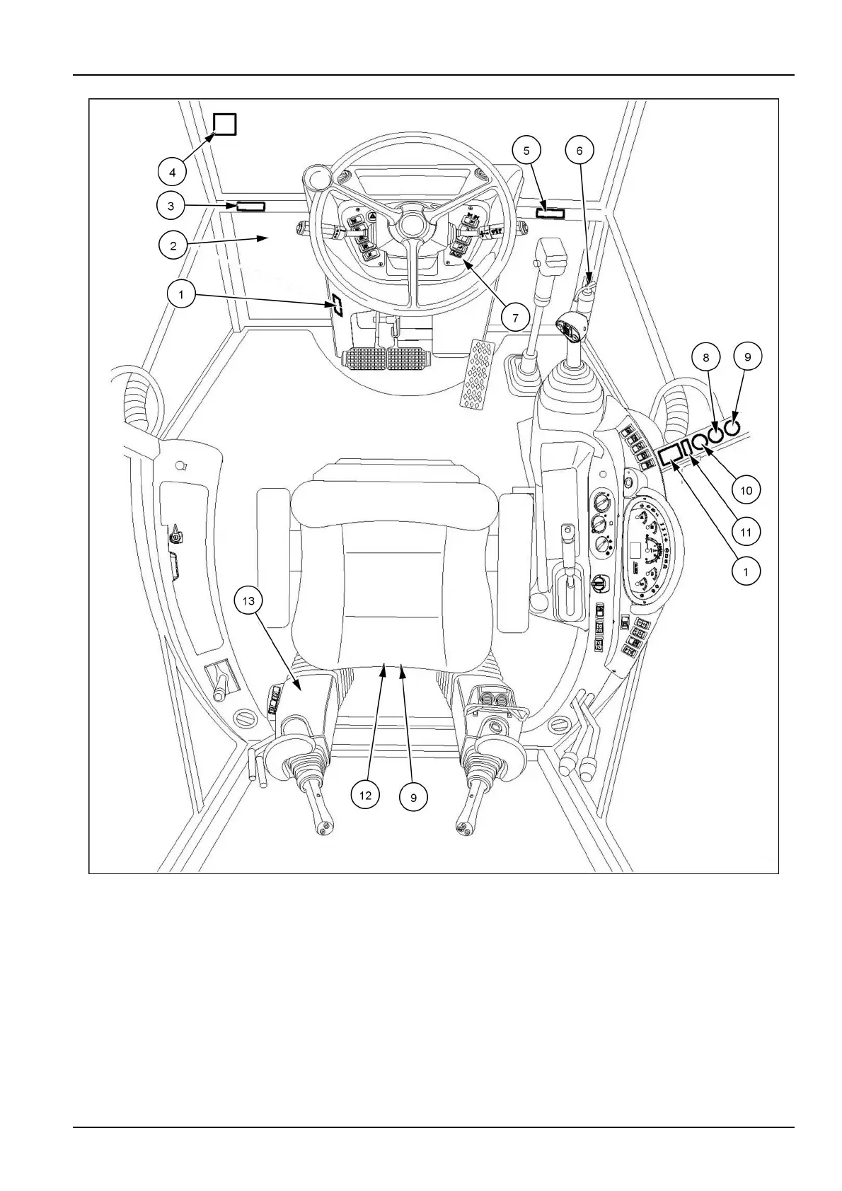 NOTE:Cabversionsafetysignsshown.Reviewthesafetysigndescriptioninthefollowingpagesforsignlocations
