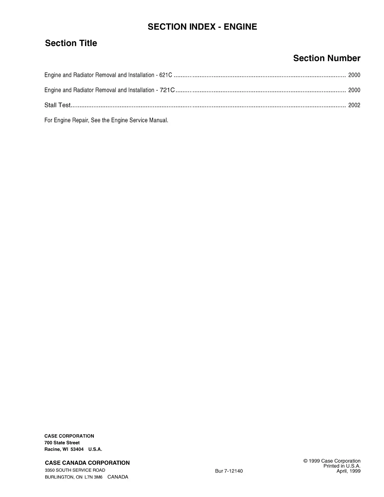 SECTION INDEX - ENGINE