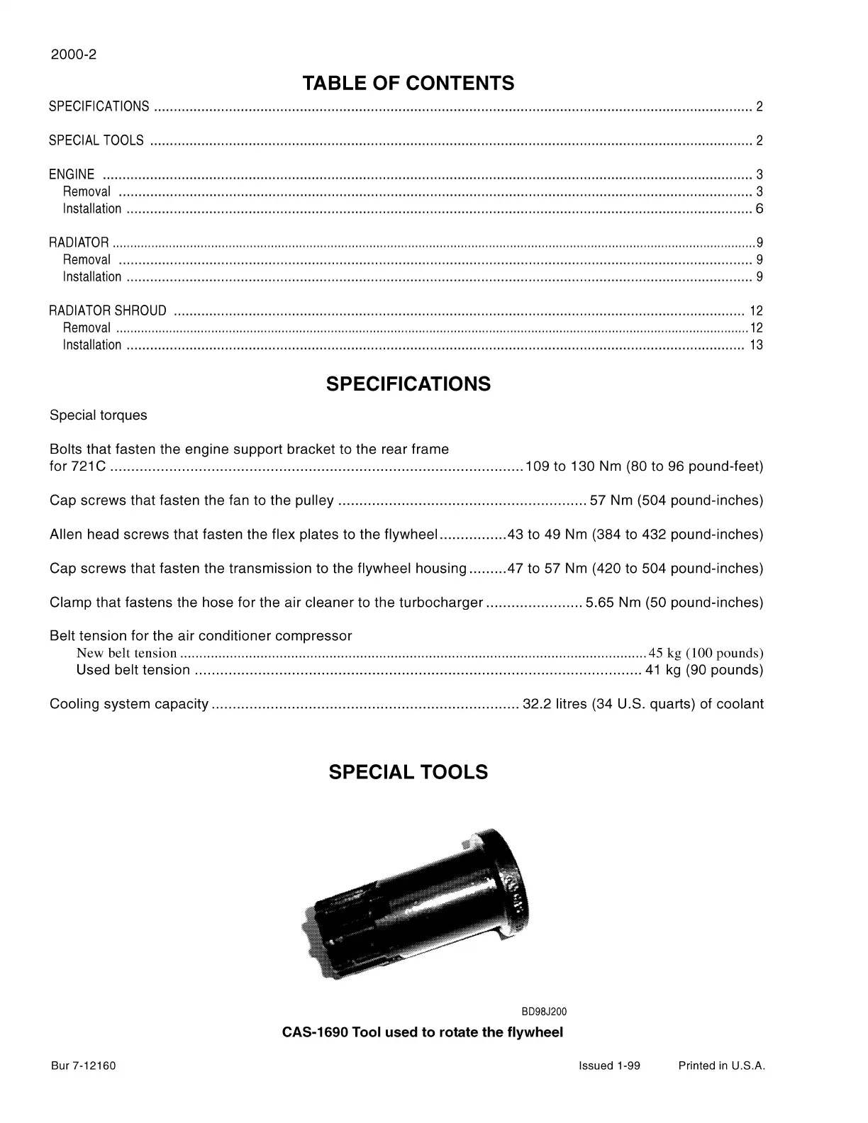 Used belt tension .......................................................................................................... 41 kg {90 pounds)