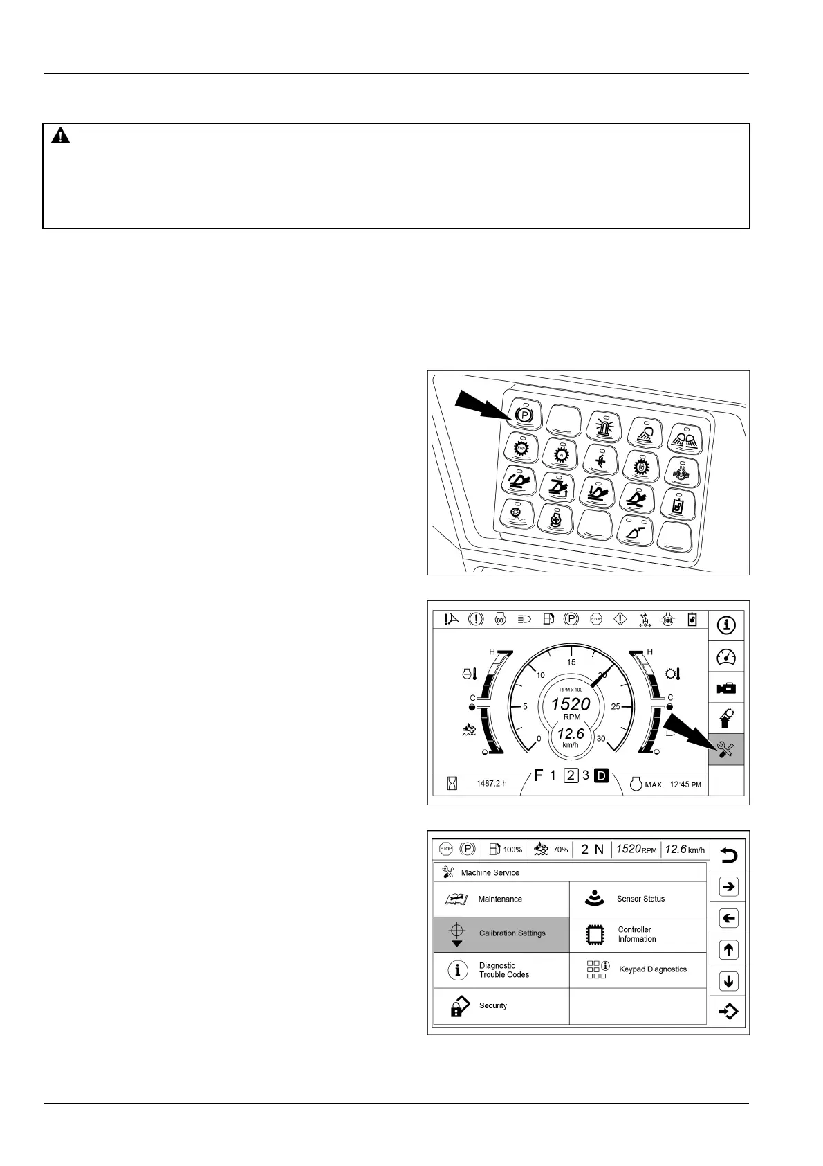 Keepallnon-authorizedpersonnelclearoftheareawhenperformingtheparkingbraketest.Parkthemachinewith