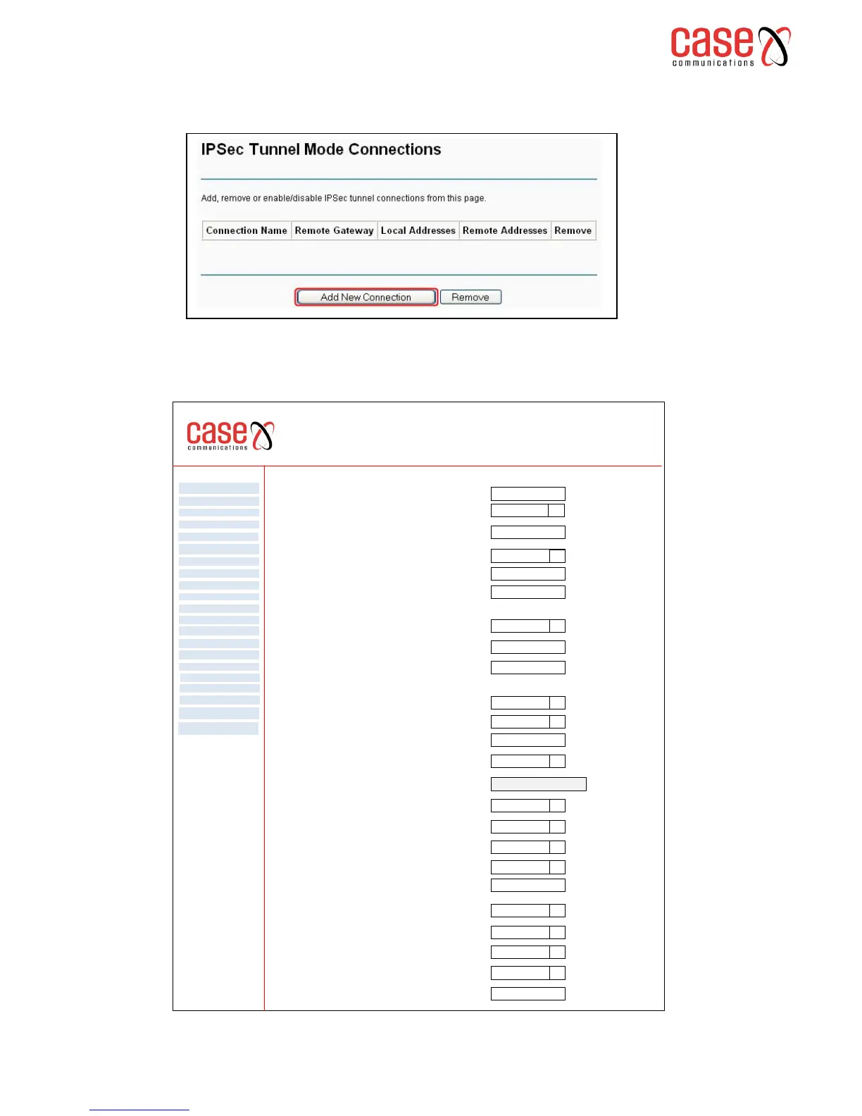 To create a new IP Sec Tunnel please click Add New Connection on the IP Sec page as shown below