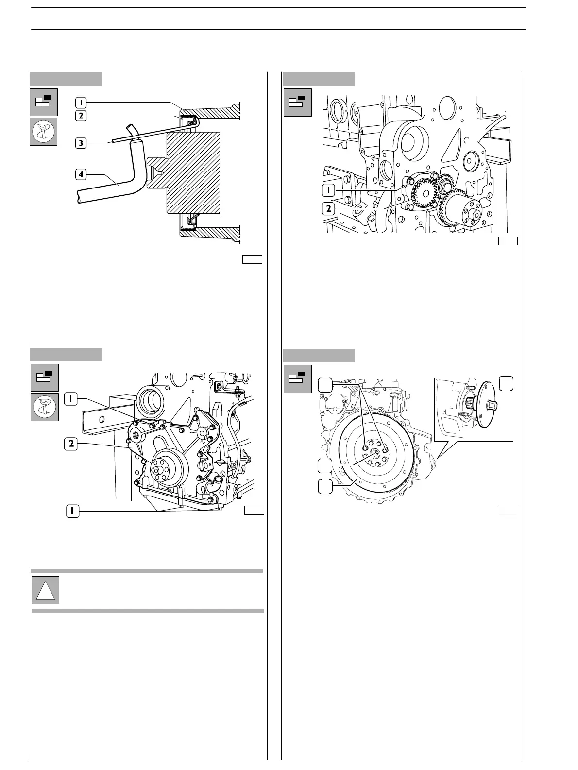 - Remove the flywheel block tool (2).