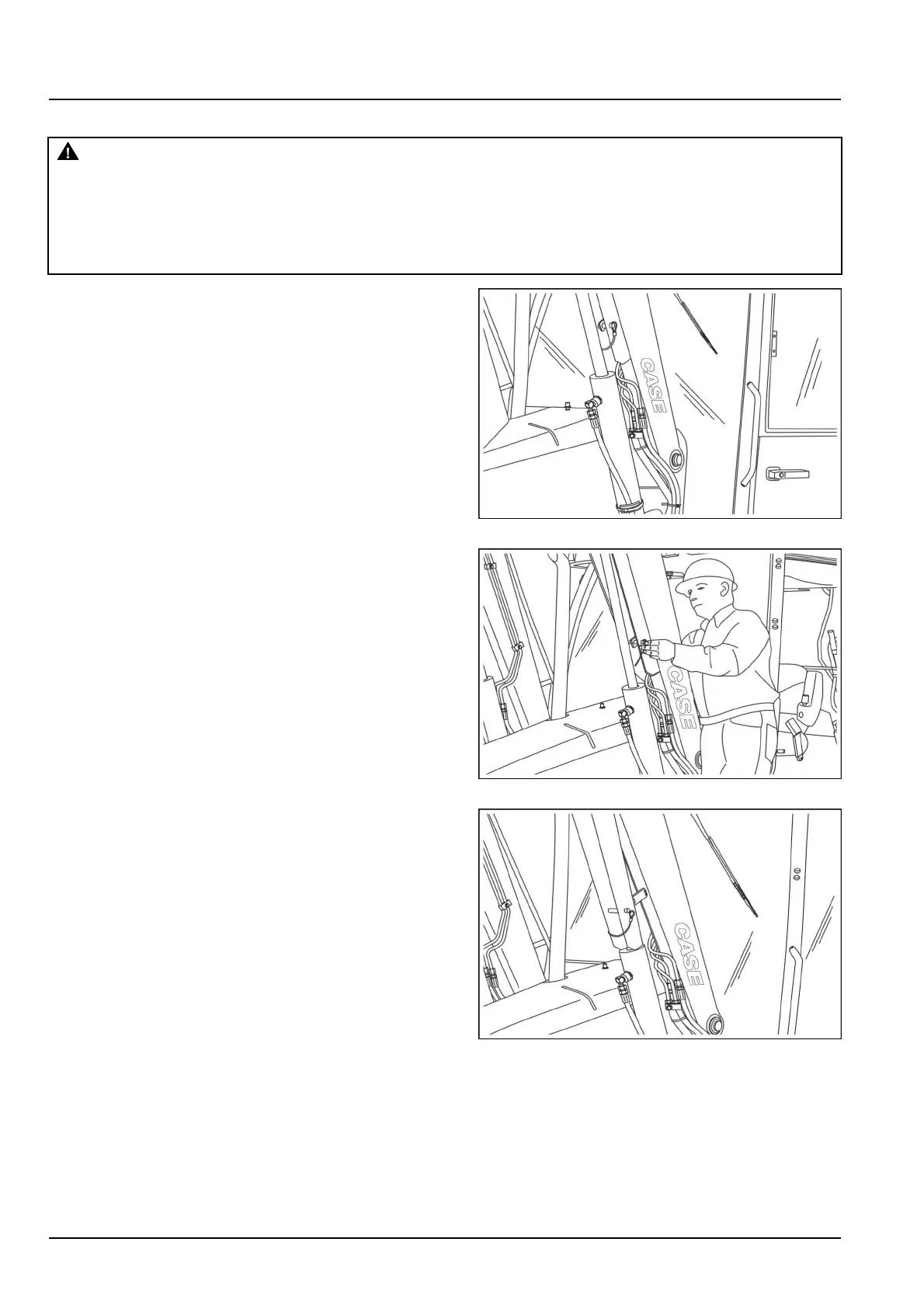 Ifyouservicethemachinewiththeloaderliftarmsraised,alwaysusethesupportstrut.Removethe