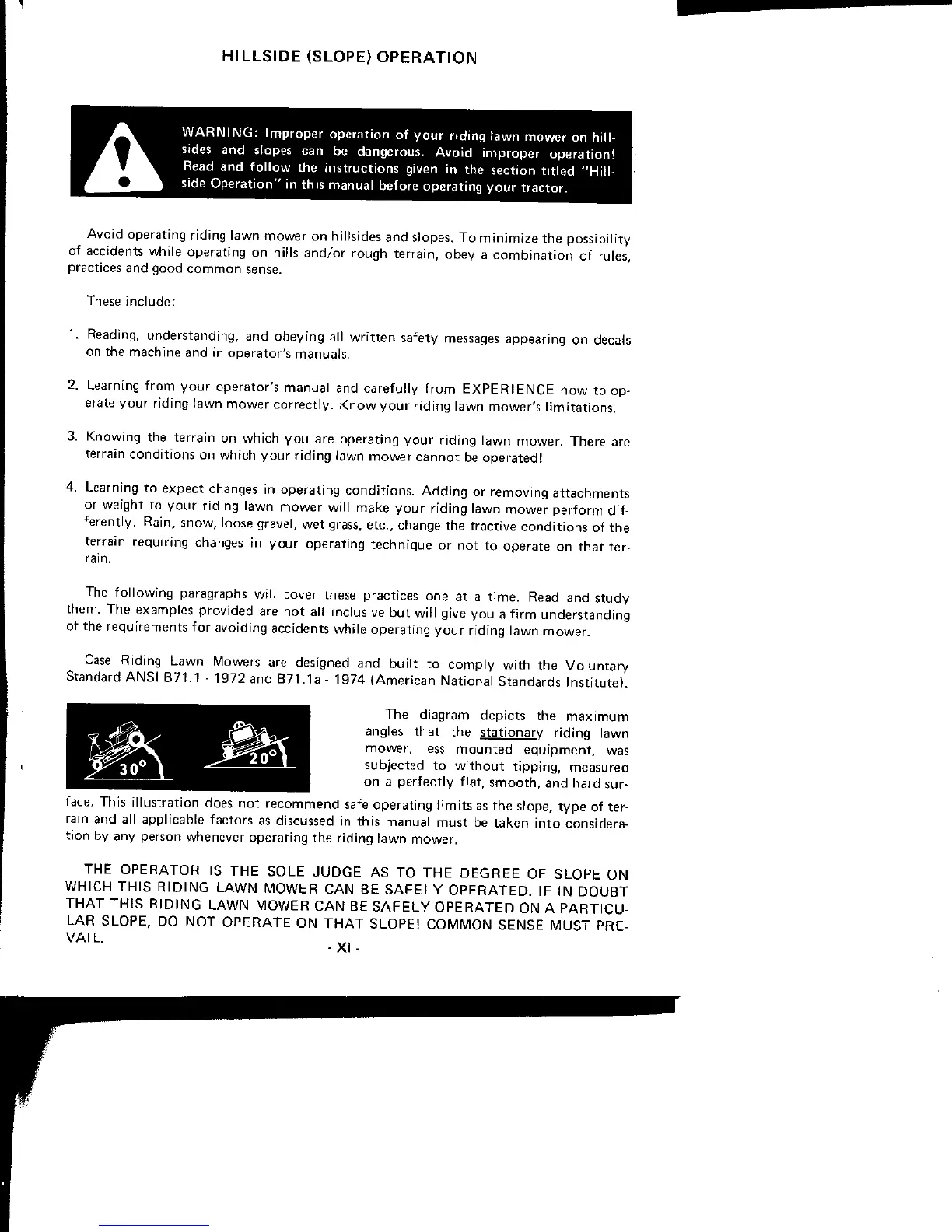 WHICH THIS RIDING LAWN MOWER CAN BE SAFELY OPERATED. IF IN DOUBT