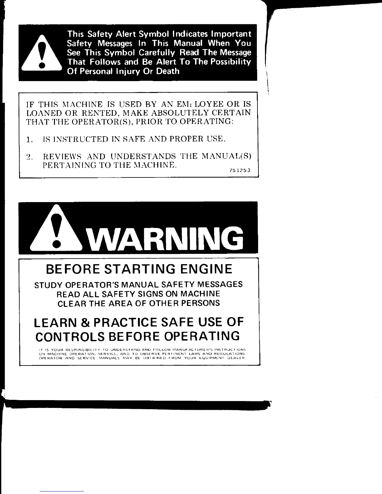 MANUALS MAY Bt OH'AINEO FROM YOUR EQUIPMENT DEALER