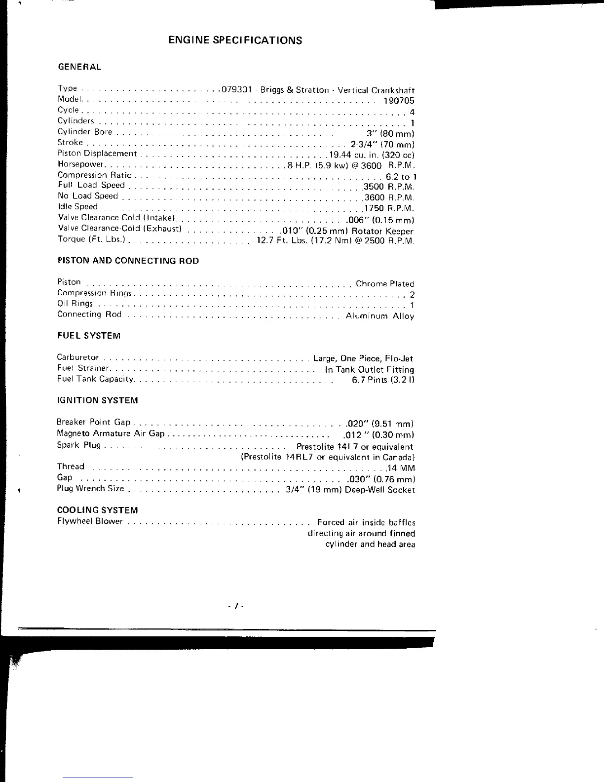 Horsepower 8 H.P. (5.9 kw) @ 3600 R.P.M.