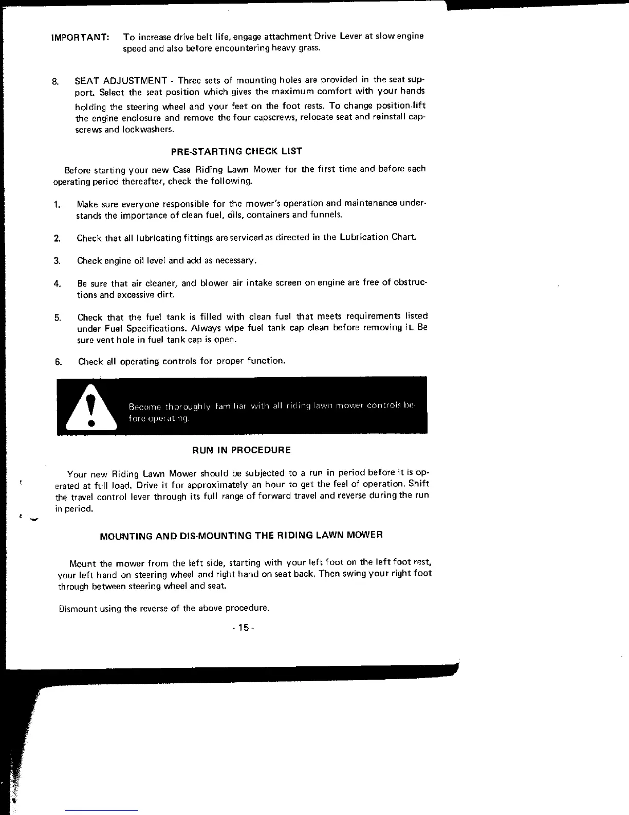 Before starting your new Case Riding Lawn Mower for the first time and before each