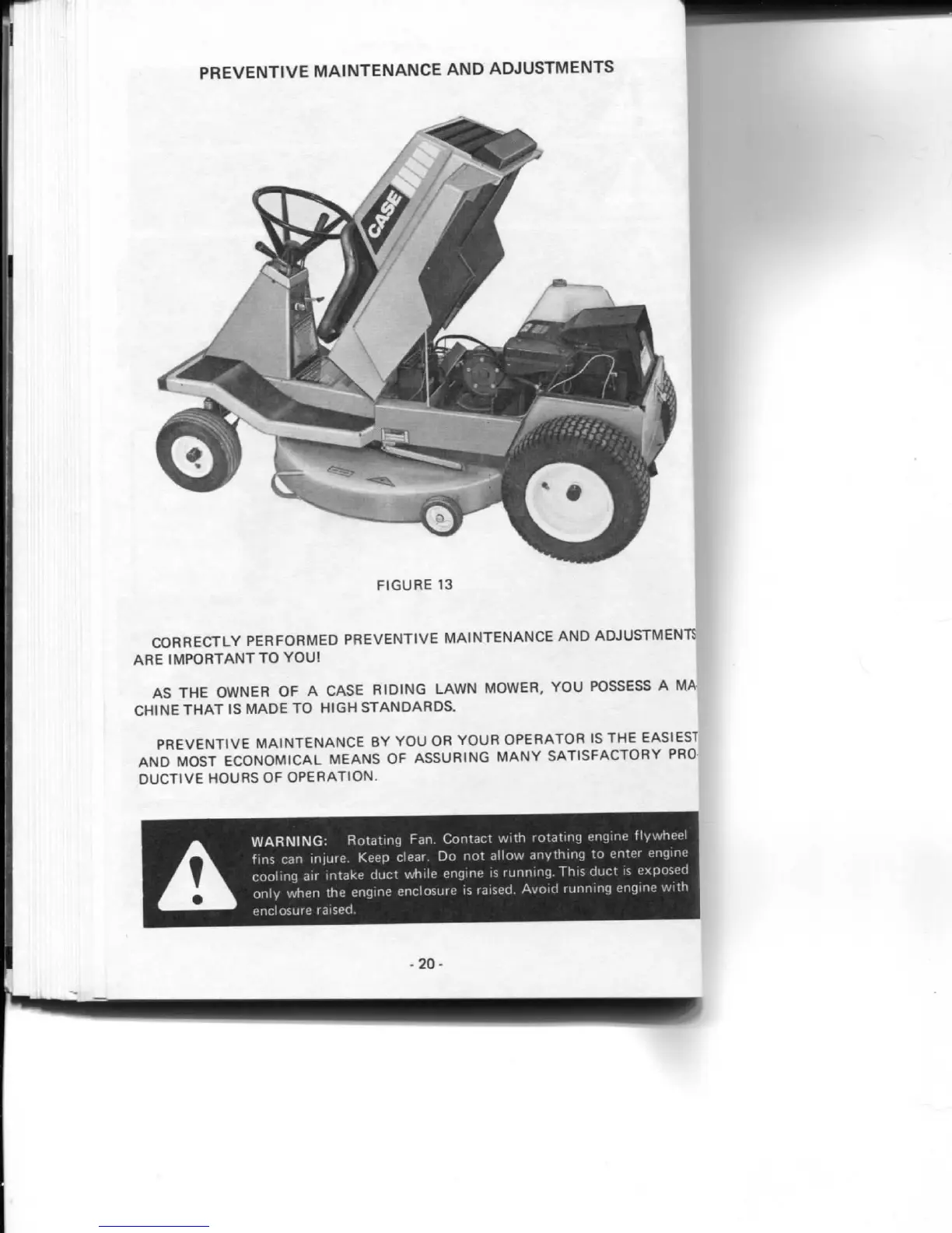 AS THE OWNER OF A CASE RIDING LAWN MOWER. YOU POSSESS A MA