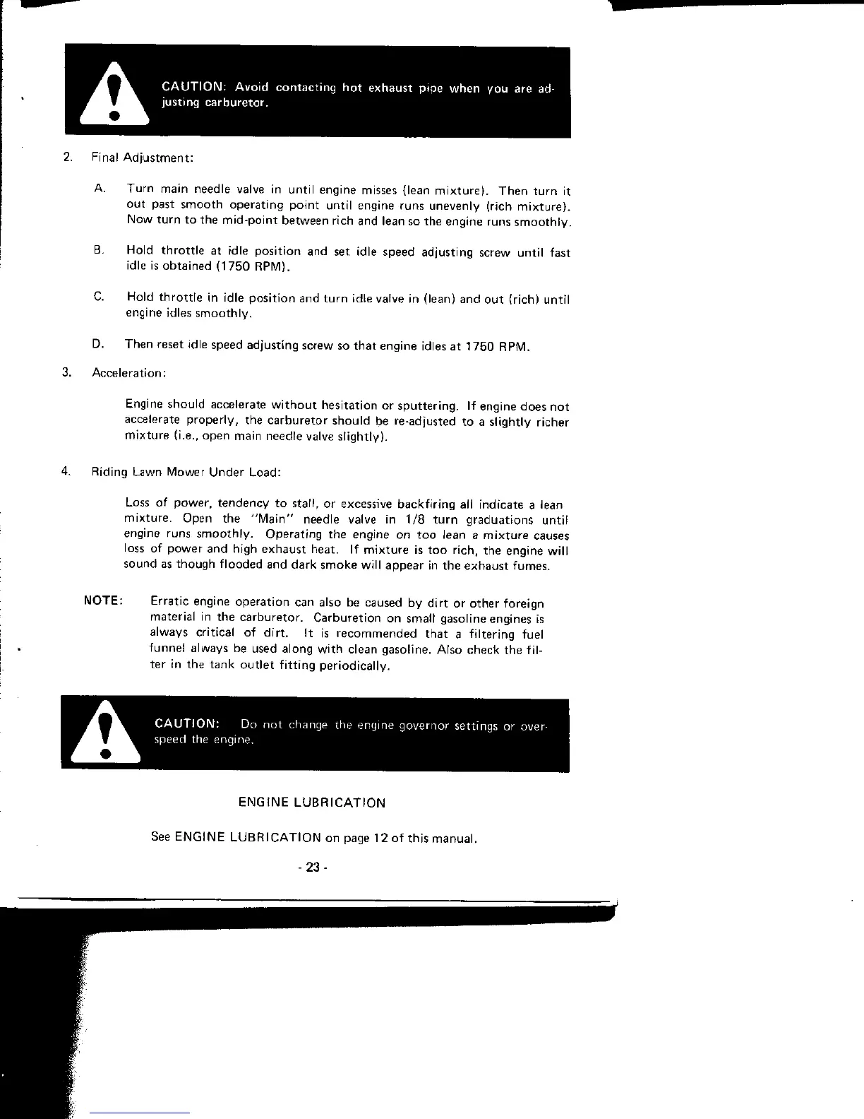 accelerate properly, the carburetor should be re-adjusted to a slightly richer
