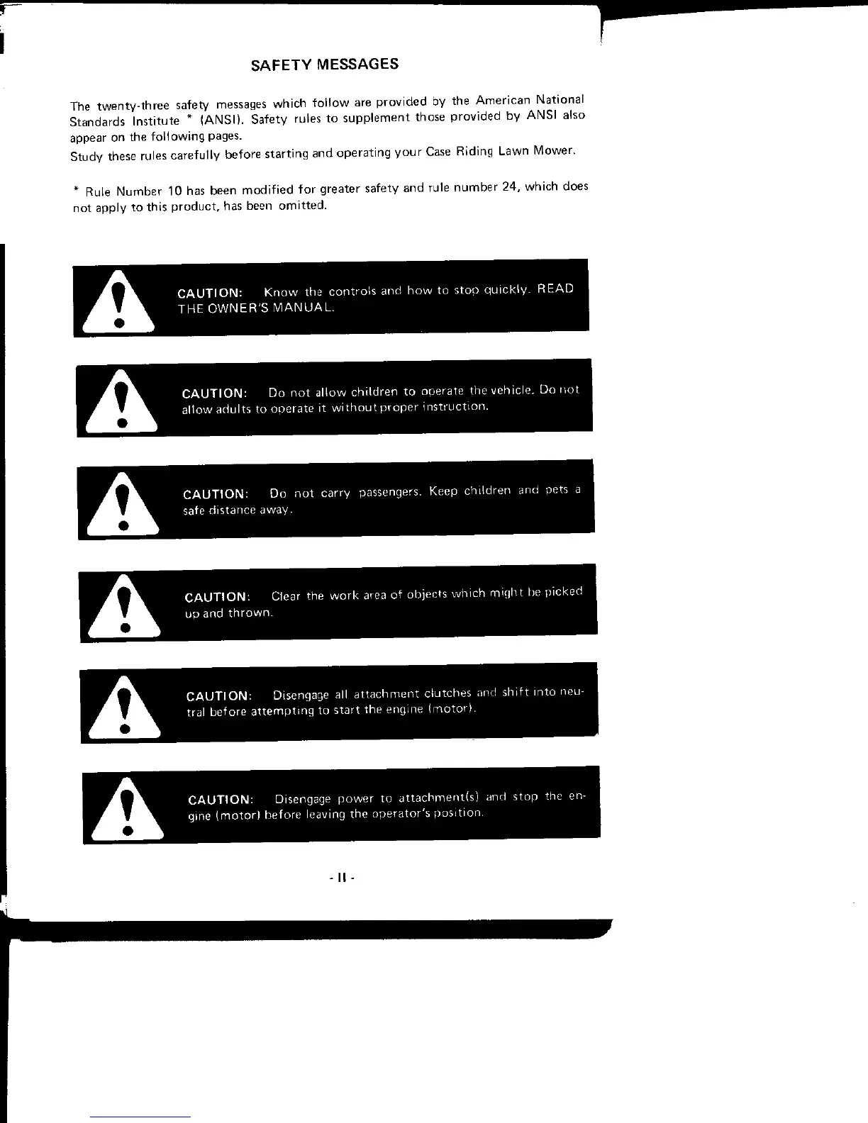 Study these rules carefully before starting and operating your Case Riding Lawn Mower.