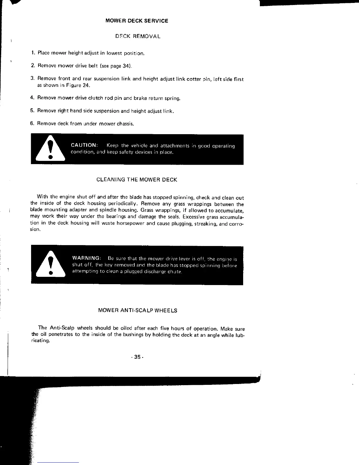 the inside of the deck housing periodically. Remove any grass wrappings between the