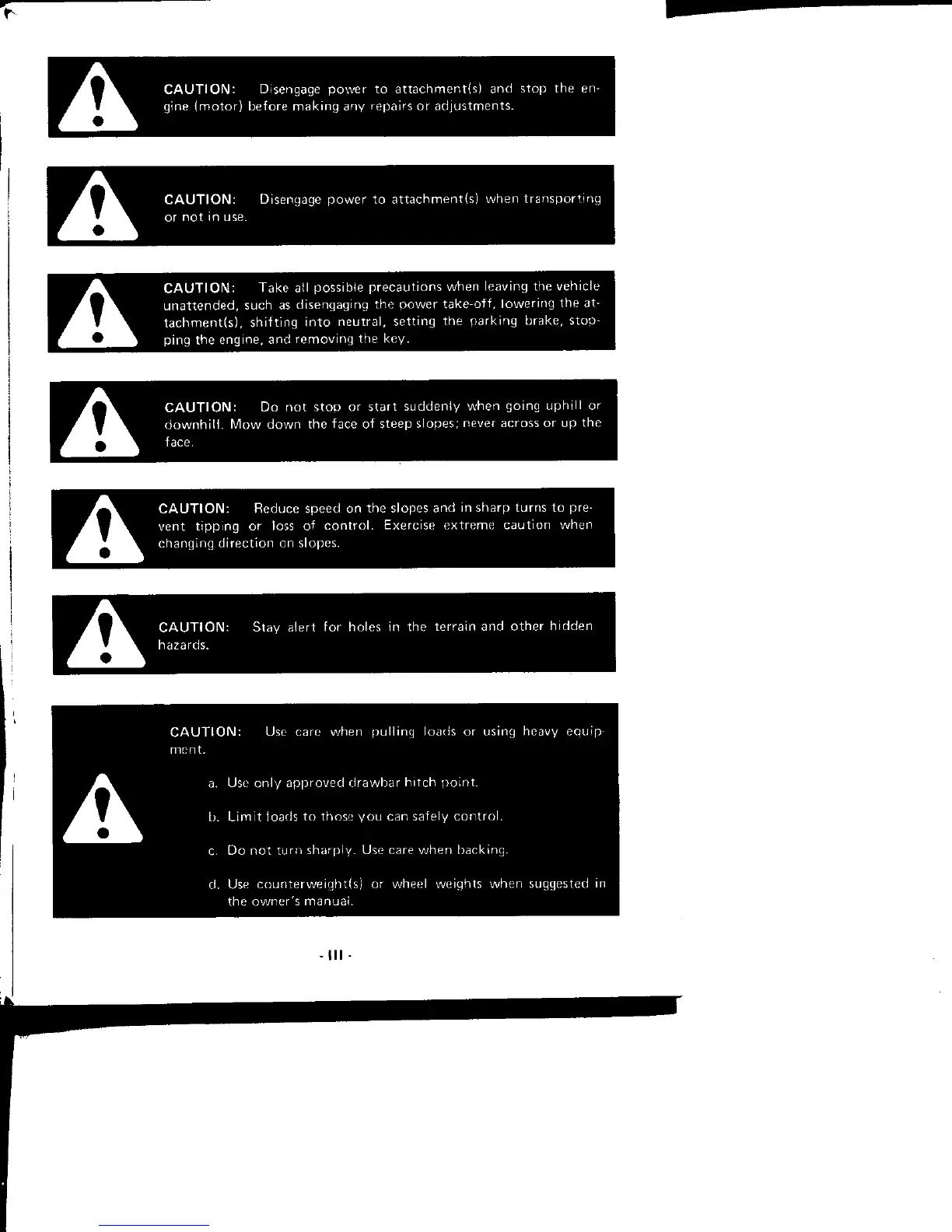 unattended, such as disengaging the power take-off. lowering the at-