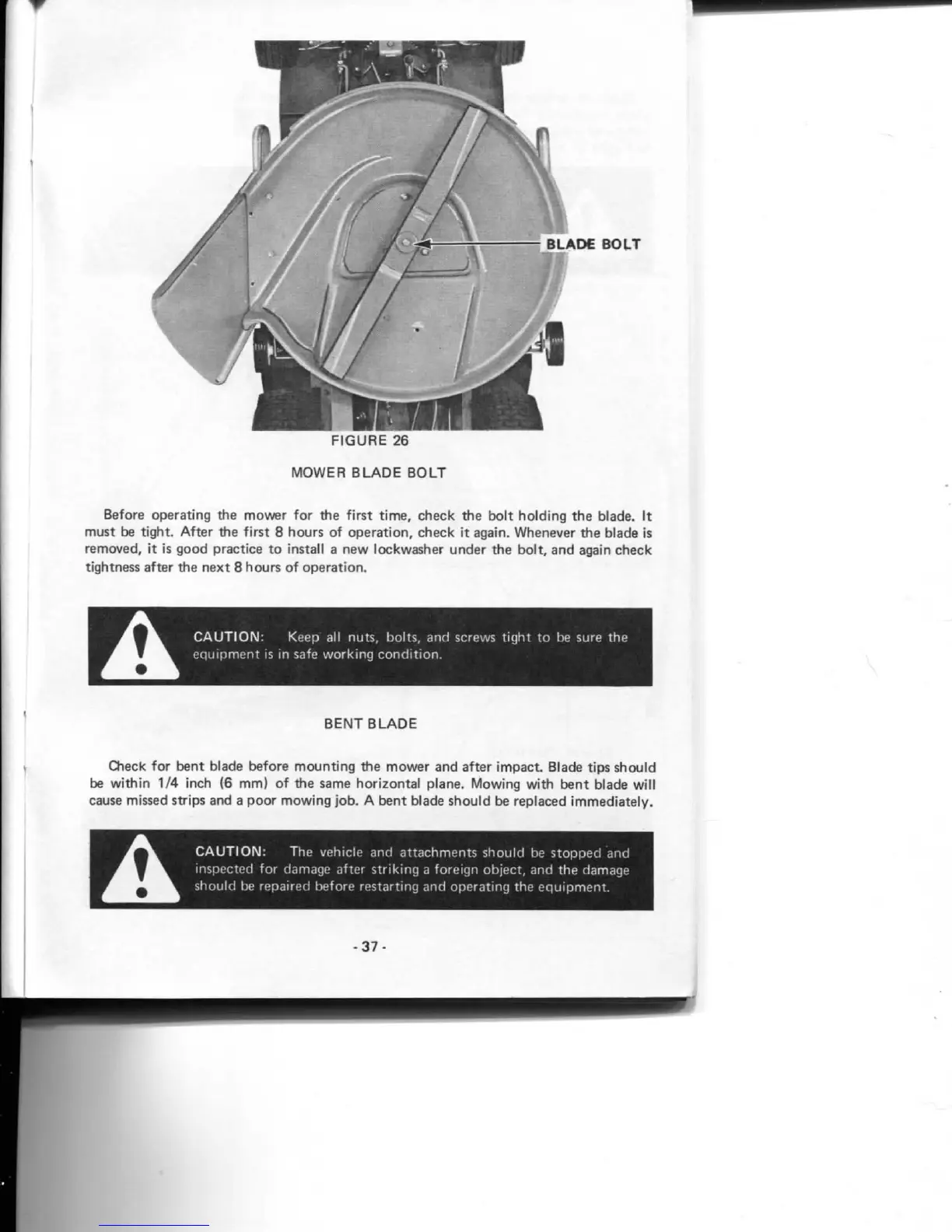 strips and a poor mowing job. A bent blade should be replaced immediately.