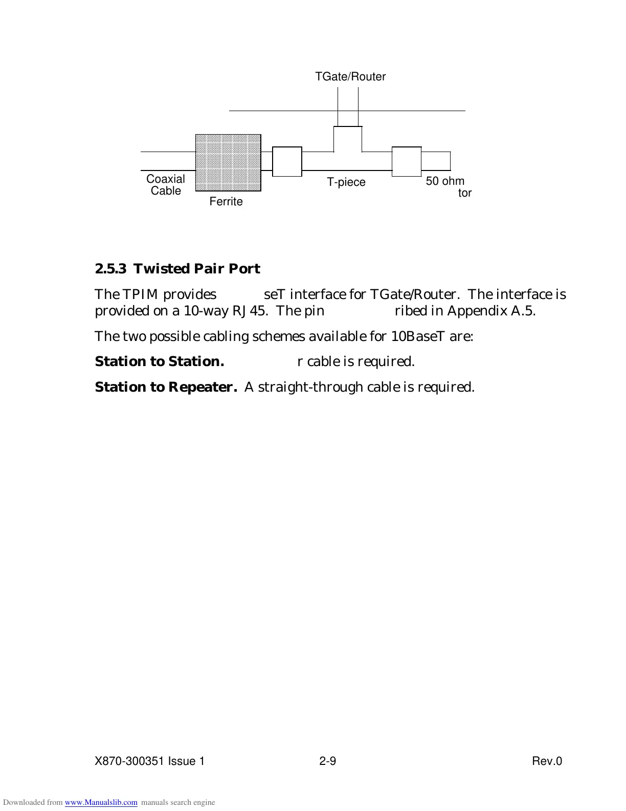 The TPIM provides a 10BaseT interface for TGate/Router. The interface is
