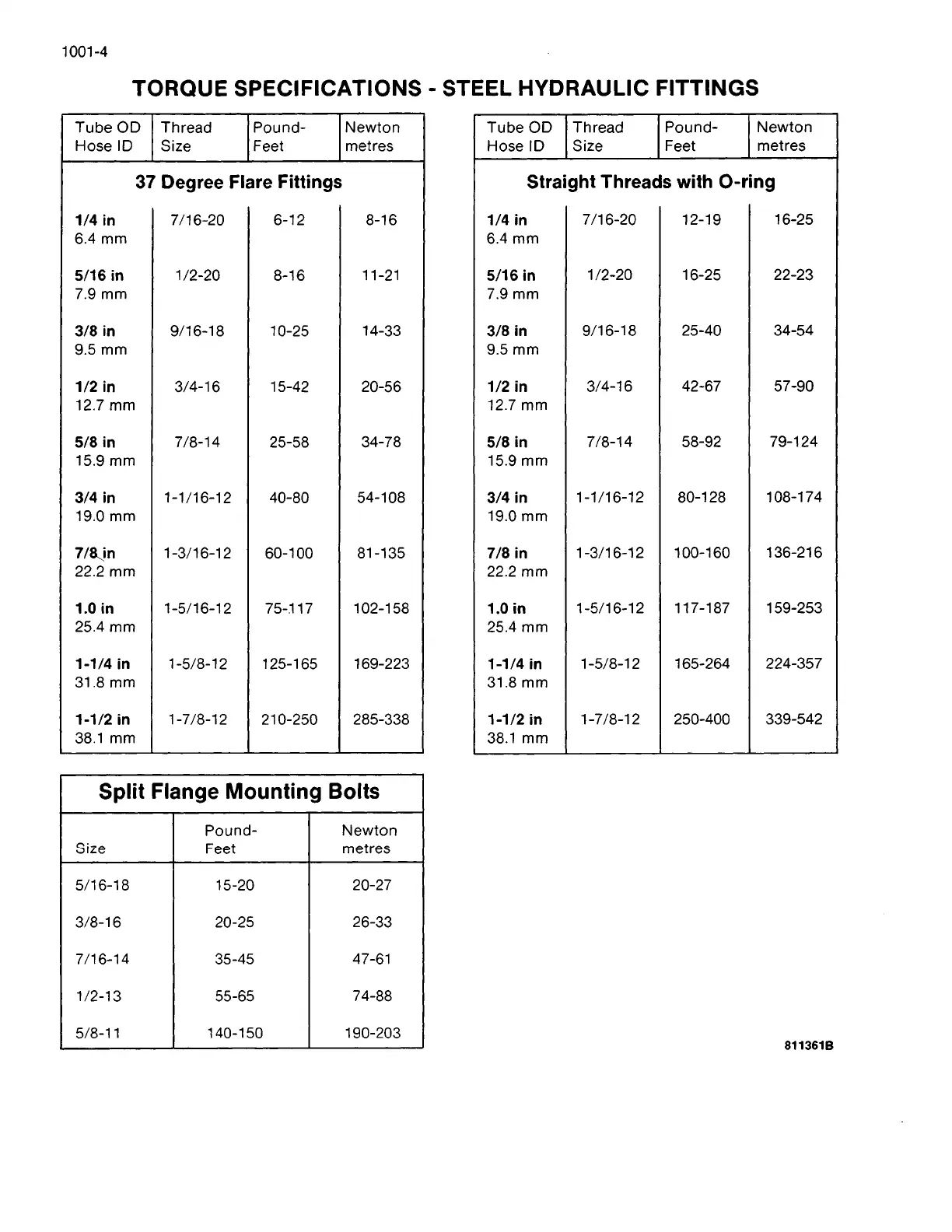 Case 821B - Steel Hydraulic Fittings Torque Specifications