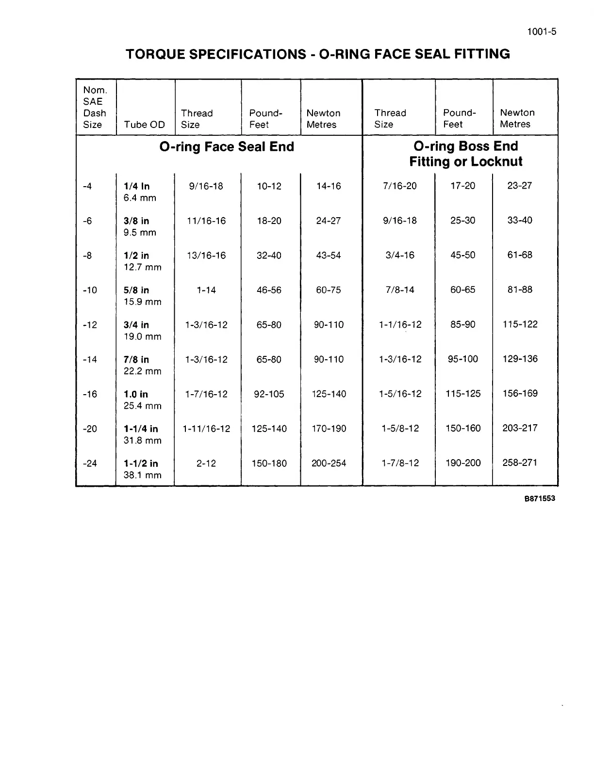 Case 821B - O-Ring Face Seal Fitting Torque Specifications