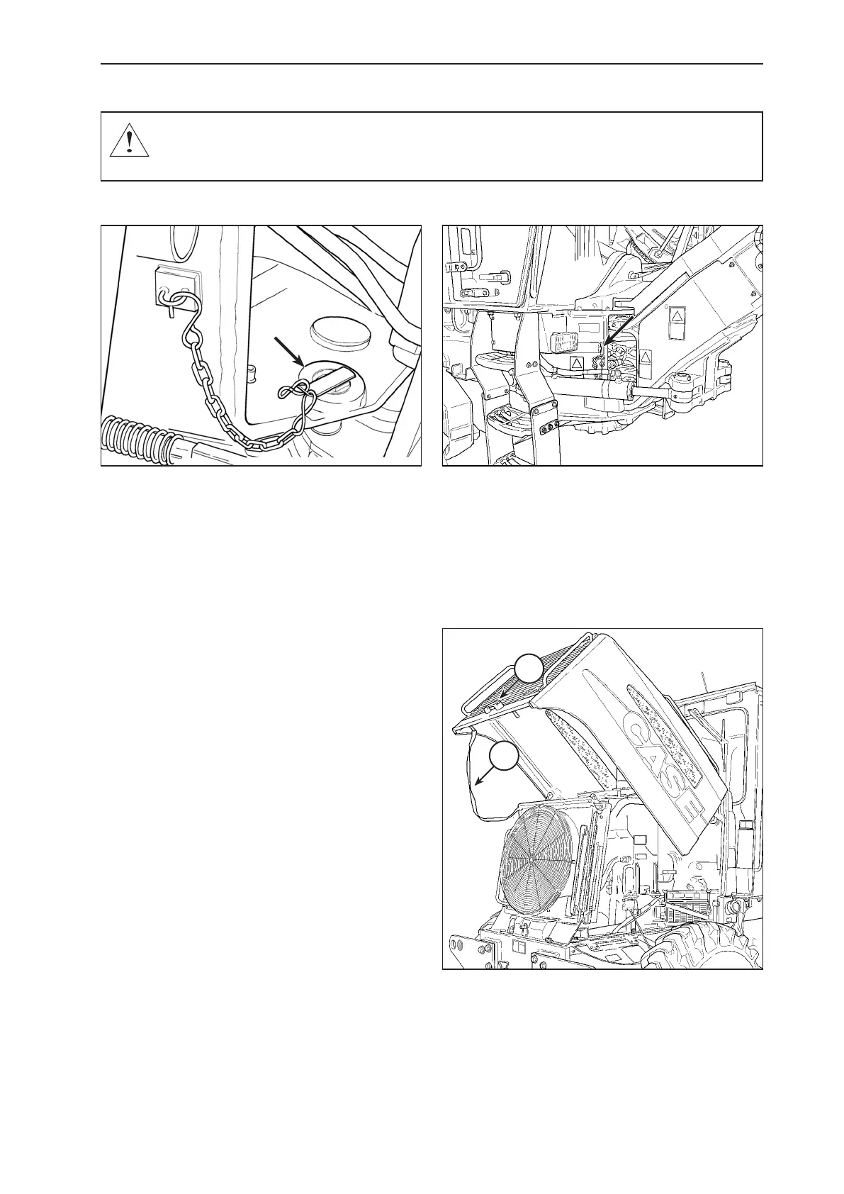 WARNING: Keep clear of this area when engine is running. Machine could pivot unless the transport and