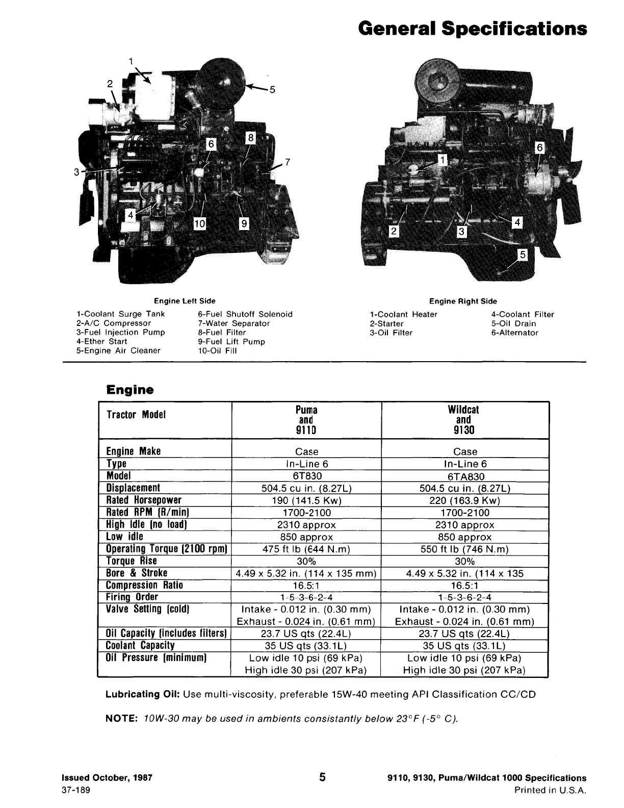 NOTE: 10W-30 may be used in ambients consistantly below 23°F (-5° CJ.