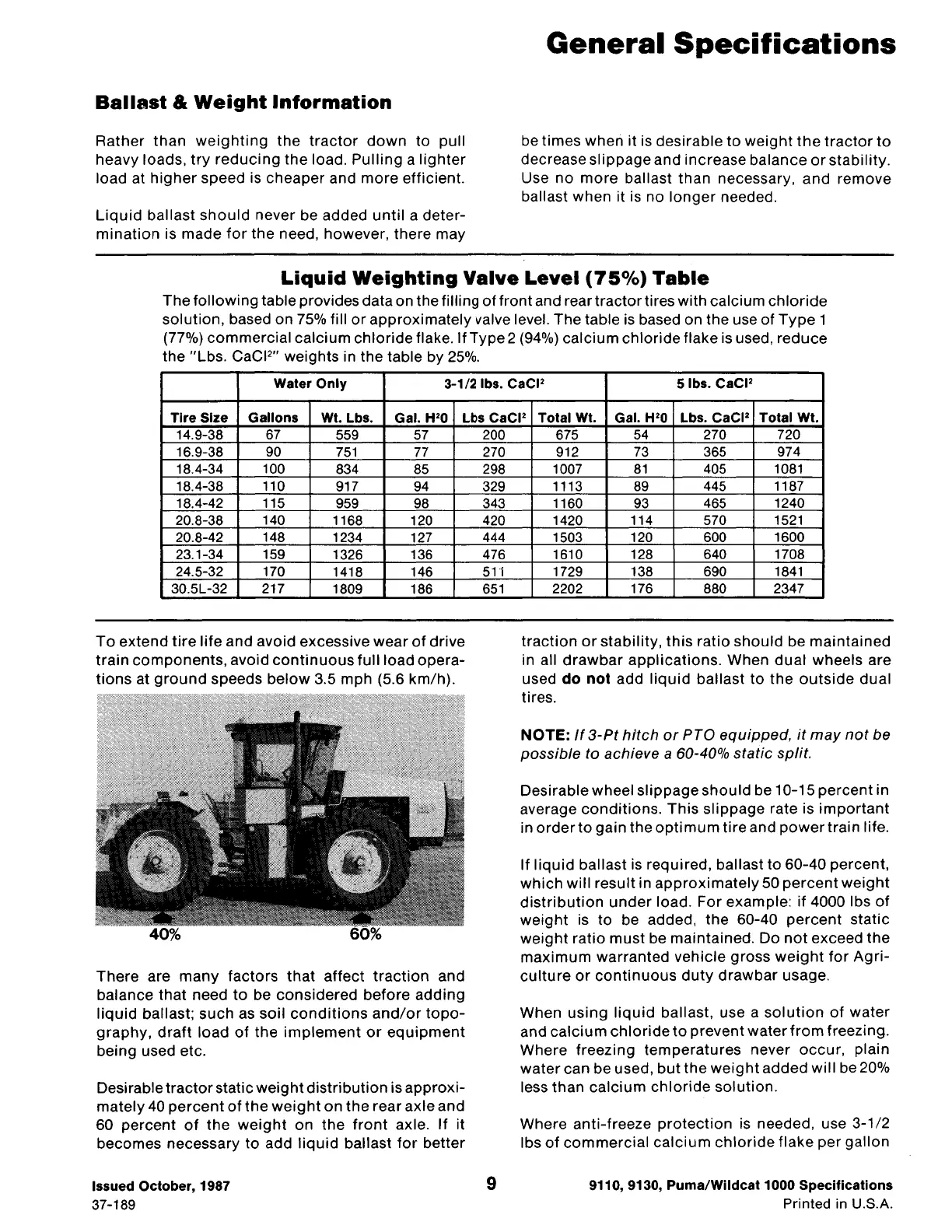 9110, 9130, Puma/Wildcat 1000 Specifications