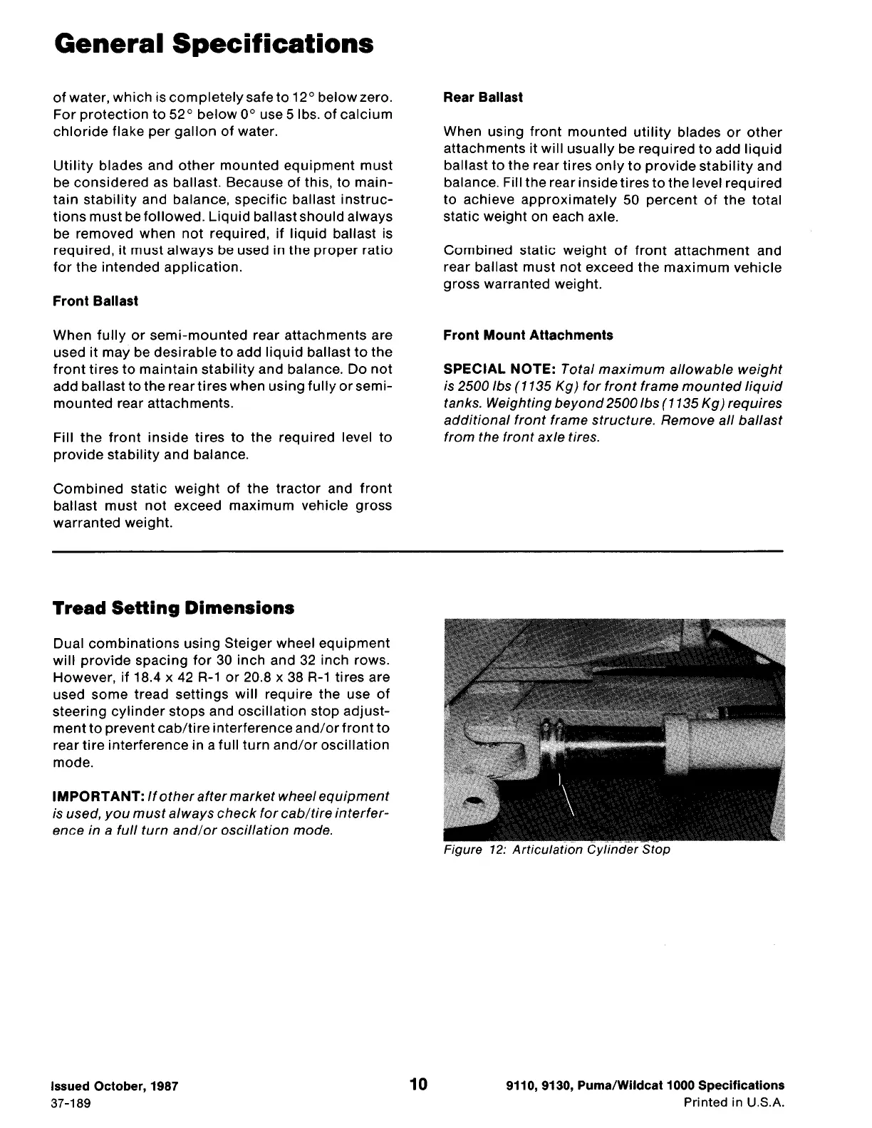 9110, 9130, Puma/Wildcat 1000 Specifications