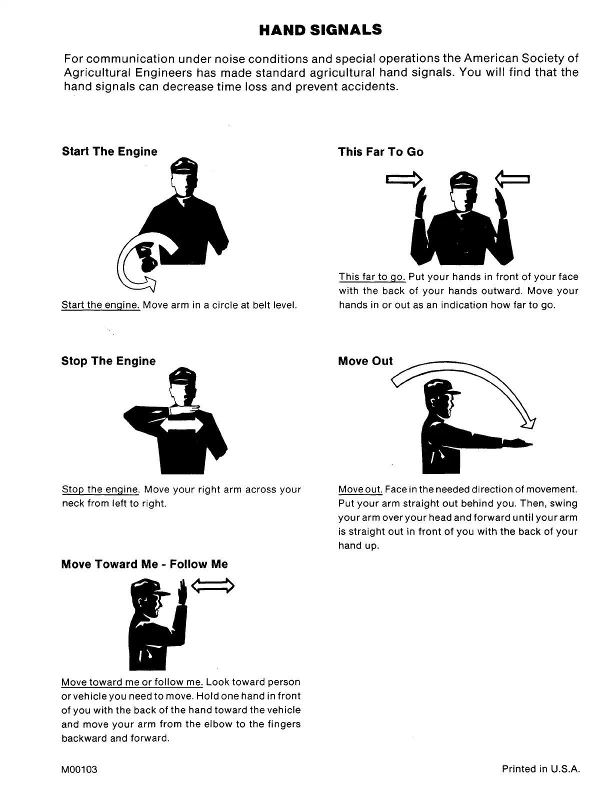 Agricultural Engineers has made standard agricultural hand signals. You will find that the