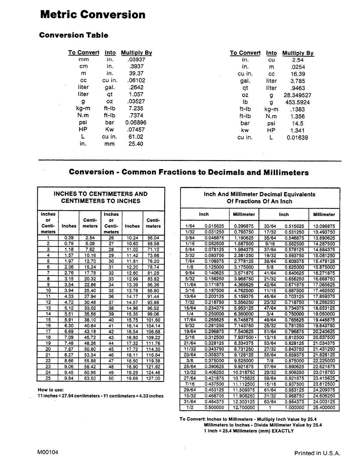 To Convert: Inches to Millimeters - Multiply Inch Value by 25.4
