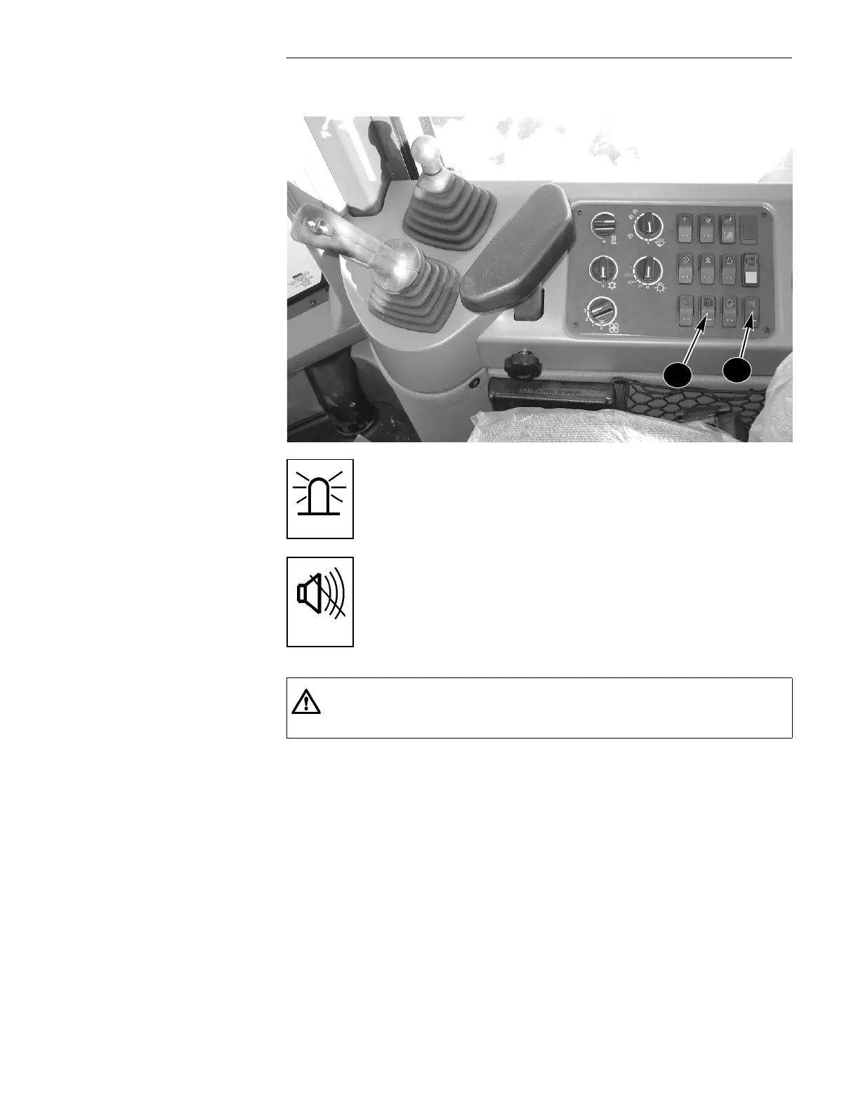 wheel loader is driven on the road and MUST BE TURNED ON when back